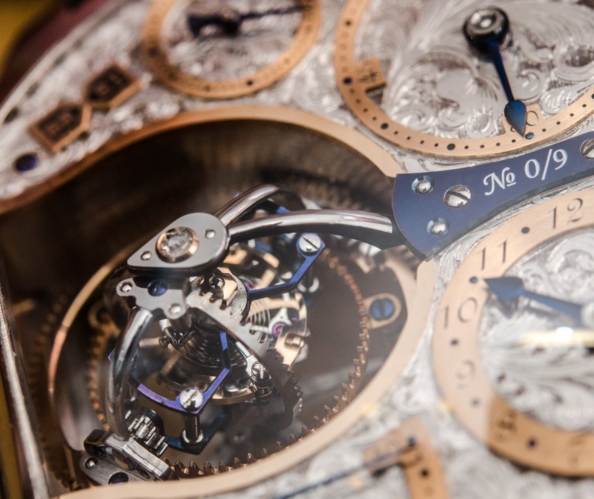 Ngoài ra, Raúl Pagès còn thêm vào những linh kiện của riêng mình. Trong đó, đặc biệt nhất chính là bánh lắc được làm thủ công, dựa theo thiết kế của George Daniels. Vâng, lại một lần nữa thì huyền thoại người Anh đã là nguồn cảm hứng cho những người nghệ nhân đồng hồ tài ba.