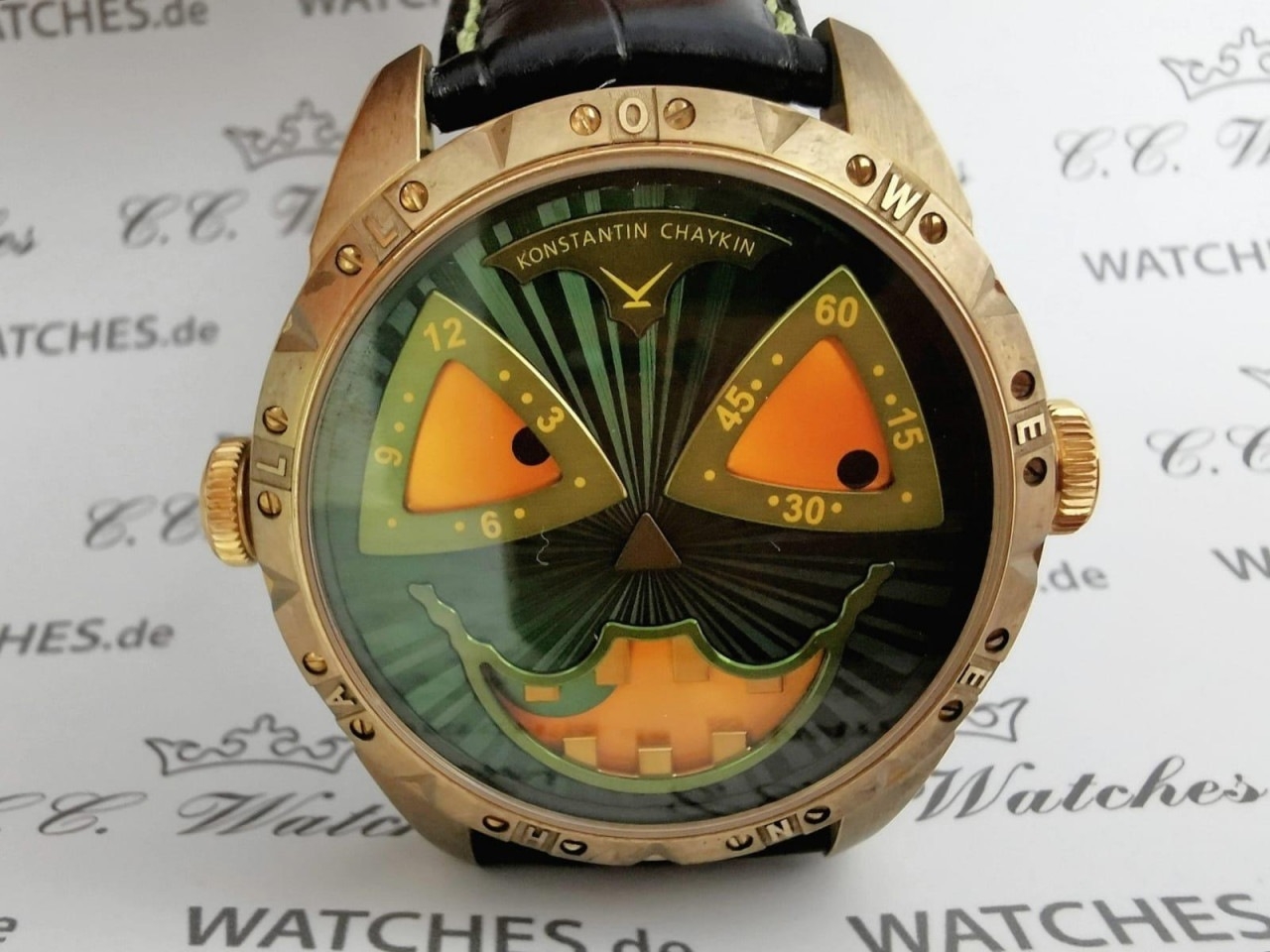 Khác với những thương hiệu đã nói ở trên, Konstantin Chaykin có cách tiếp cận hiện đại và phóng khoáng hơn rất nhiều. Nghệ nhân đồng hồ người Nga sở hữu những mẫu đồng hồ vui nhộn và cực kỳ nổi bật, không đi theo phong cách truyền thống thường thấy. Ví dụ như chiếc Wristmons có mặt số tạo thành hình gương mặt với hai chỉ báo giờ phút là hai con mắt, lịch tuần trăng lại được đặt ở vị trí mồm. Và cái tên nổi bật nhất trong dòng Wristmons chính là chiếc Joker đã quá nổi tiếng.