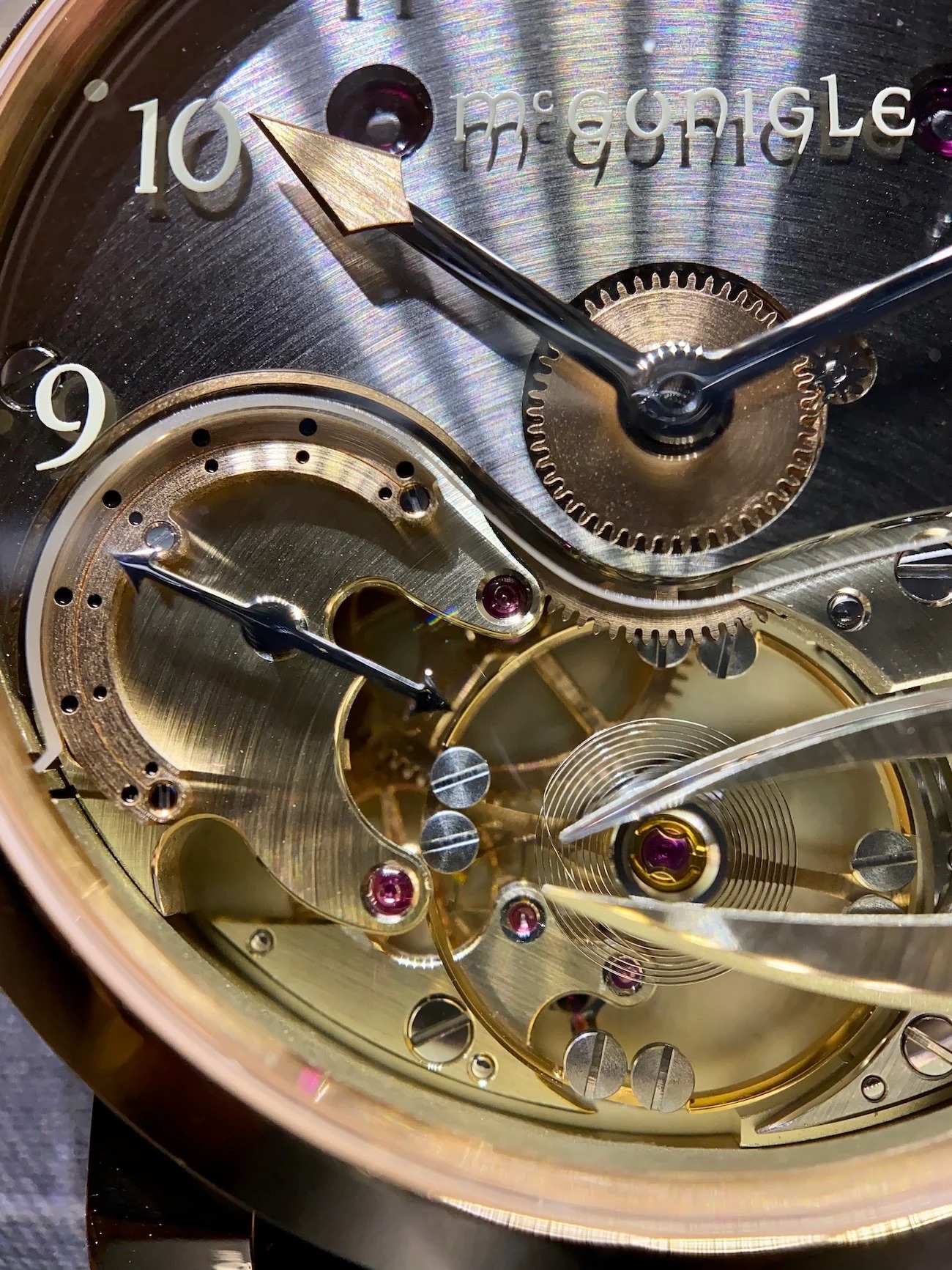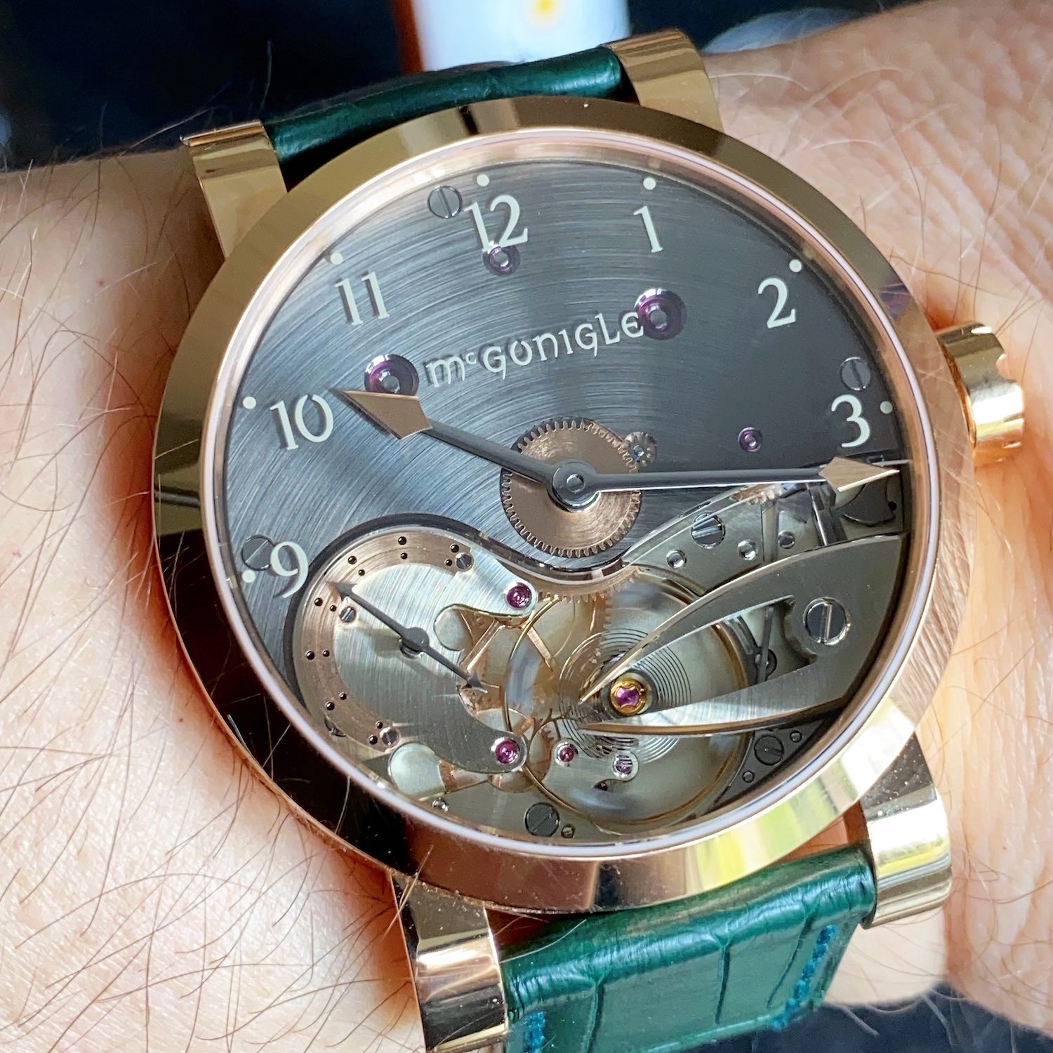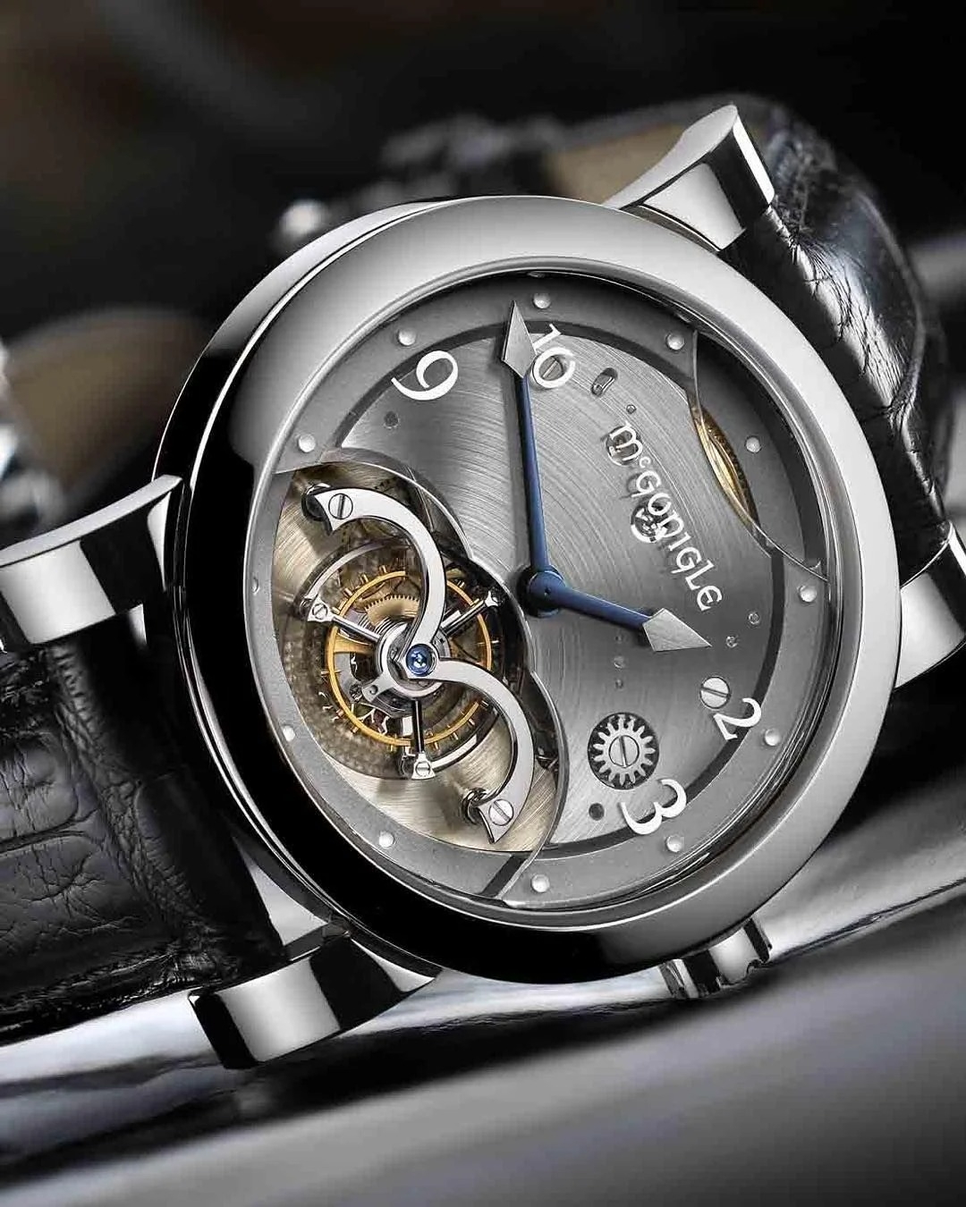 Với kinh nghiệm nhiều năm trong việc sản xuất tính năng, không có gì khó hiểu khi mẫu đồng hồ đầu tiên của McGonigle sở hữu cơ chế Tourbillon cực kỳ phức tạp. Và giống như các nhà sản xuất độc lập khác, họ cũng chỉ làm theo yêu cầu của các khách hàng đặc biệt với độ tùy biến được đẩy lên mức tối đa.