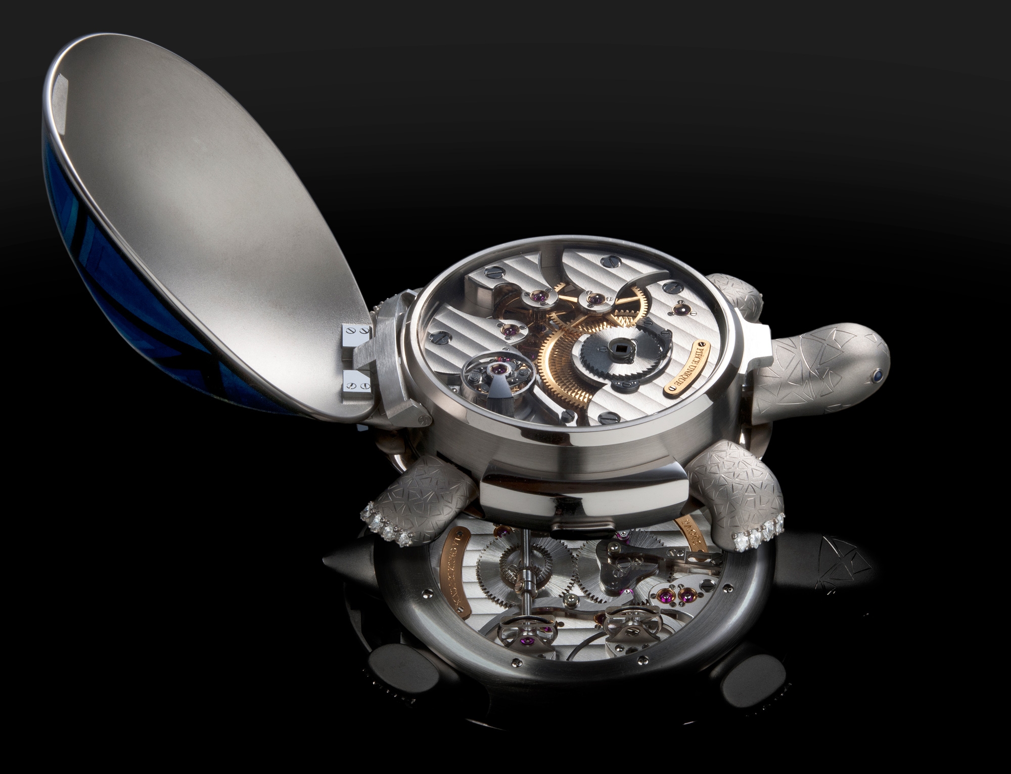 Kỹ năng sản xuất rối cơ học được Raúl Pagès tiếp thu trong quá trình phục chế đồng hồ của mình, và con rùa cơ khí là kết tinh của điều đó. Bộ máy bên trong con rùa khá tương đồng với đồng hồ, sử dụng năng lượng dây cót. Lớp vỏ bên ngoài thì được làm bằng vàng khối, tráng men và trang trí bởi rất nhiều kim cương và cả Sapphire.
