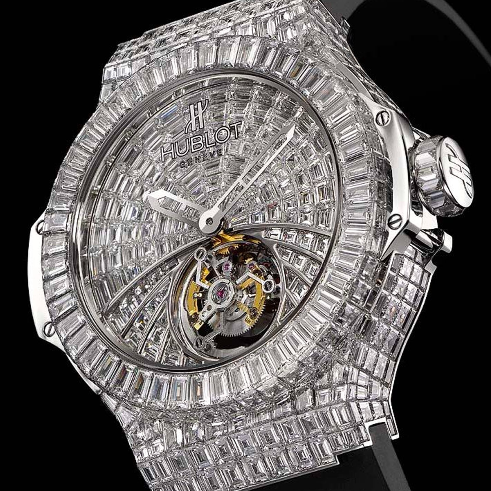 Ra mắt vào năm 2011, mẫu Big Bang Tourbillon trong vị trí này được rao bán với mức giá cỡ 3 triệu USD. Mặt số của chiếc đồng hồ này cực kỳ lộng lẫy khi chứa đựng 638 viên kim cương với tổng trọng lượng là 142 carat. Thậm chí đường cắt baguette của những viên kim cương là rất phù hợp với cấu trúc của vỏ đồng hồ Hublot Big Bang hiện tai. Các cột ở hai bên bảo vệ nghiêm ngặt mặt số cầu kỳ, đại diện cho Place Vendome, nơi tọa lạc của cửa hàng flagship của Hublot.
