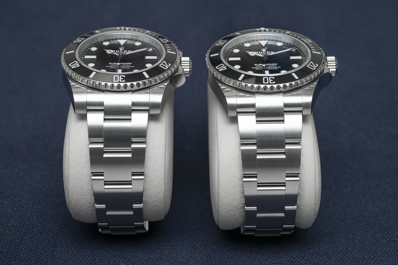 Dáng vỏ có ảnh hưởng lớn hơn nhiều so với đường kính vỏ (Chiếc Submariner 40mm cũ ở bên trái, còn chiếc Submariner 41mm mới ở bên phải)