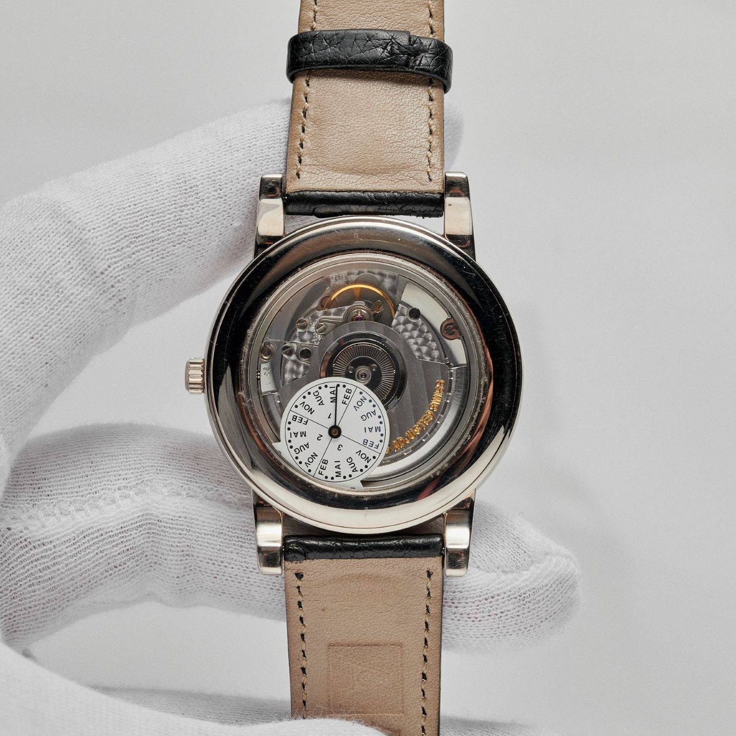 Còn giữ tình trạng rất tốt, chiếc De Bethune Perpetual Calendar DB15 bằng vàng trắng có giá ước tính nằm trong khoảng 70.000 CHF – 80.000 CHF và “fixed price” là 150.000 CHF.