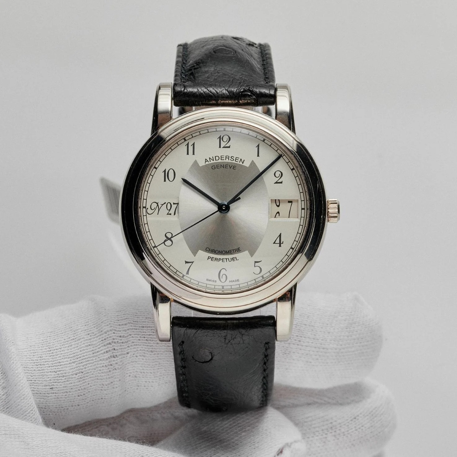 Mặc dù có vẻ ngoài rất bóng bẩy, nhưng Chronometre Perpetual là một chiếc đồng hồ có một số bí ẩn. Mặt số phía trước đồng hồ chỉ hiển thị ngày và giờ, trong khi mặt sau thể hiện tháng và năm nhuận, trên cùng của rotor. Được sản xuất từ năm 1993 đến 1996 và với số lượng rất nhỏ được chứng nhận bởi COSC, mẫu Andersen Genève Chronometre Perpetual là làm từ vàng trắng, có số seri 27. Giá ước tính của mẫu đồng hồ này trong khoảng 15.000 CHF - 20.000 CHF và tùy chọn giá cố định là 40.000 CHF.