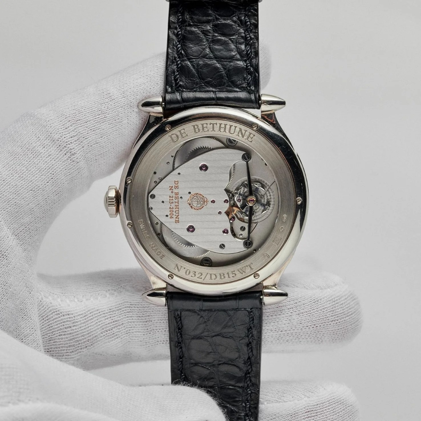 Xếp sau Journe khi nói đến các nhà sản xuất đồng hồ độc lập nổi tiếng nhất hiện nay là De Bethune. Thương hiệu này được thành lập vào năm 2002 bởi một thợ đồng hồ thiên tài, Denis Flageollet, với sự giúp đỡ của David Zanetta - đại lý đồng hồ cổ đến từ Ý. Và mặc dù các thiết kế hiện tại chắc chắn rất hấp dẫn, nhưng vẫn có điều gì đó khá đặc biệt ở những mẫu đồng hồ đầu tiên. Chẳng hạn như DB15 Lịch vạn niên năm 2004, có các càng nối dây hình nón đặc biệt và cực kỳ trang nhã, mang hơi hướng hiện đại của nghệ thuật chế tạo đồng hồ cổ điển.