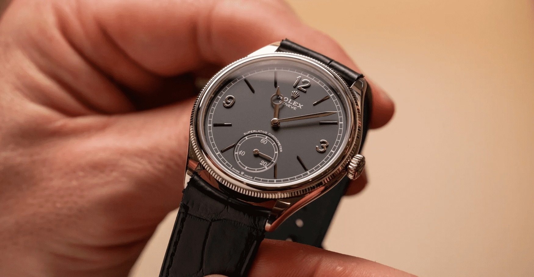 Perpetual 1908 vẫn có viền dạng rãnh, một đặc trưng quen thuộc của Rolex, nhưng lại mỏng hơn nhiều so với cái chúng ta thấy trên Datejust hay Day-Date. Đây là một mẫu đồng hồ tinh tế và nó đã thể hiện rất rõ điều đó cho mọi người thấy, đặc biệt là ở phiên bản bằng vàng trắng có mặt số đen.