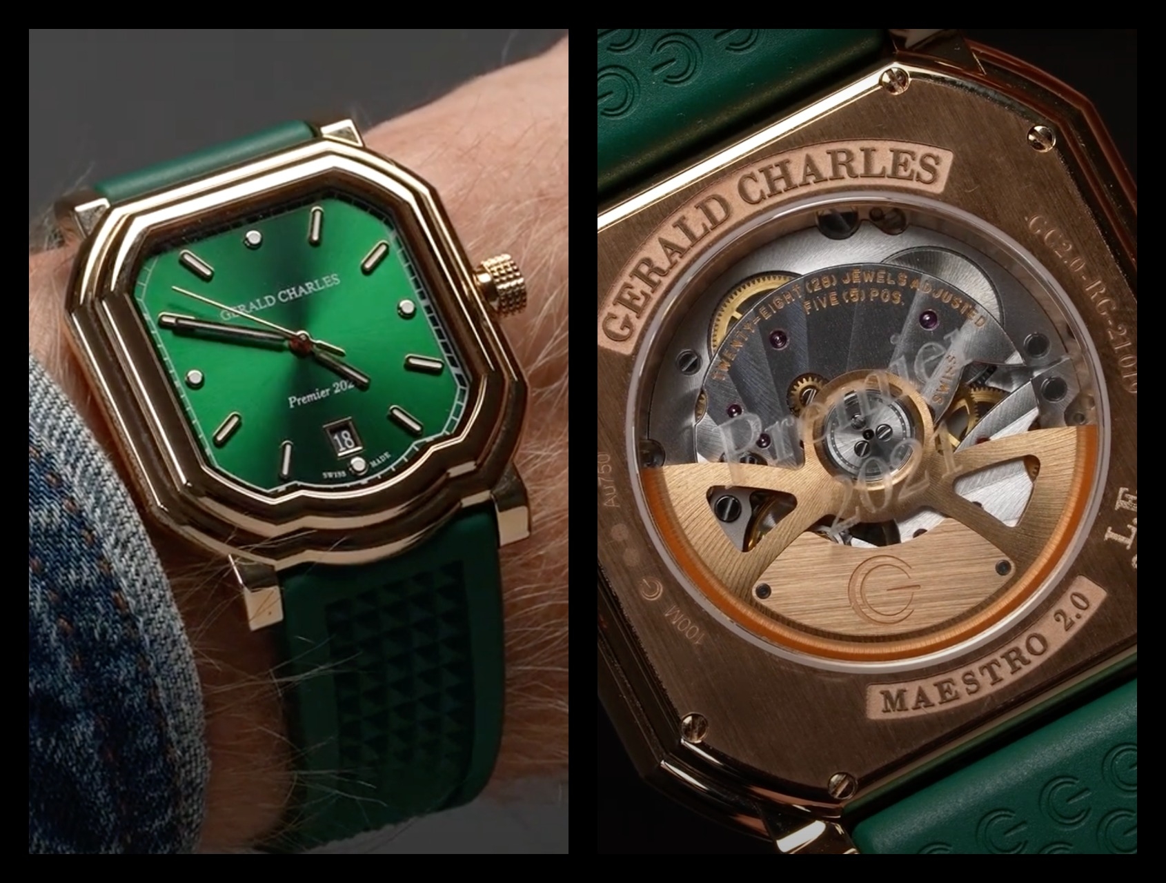 Gerald Charles - đại diện trong giới chế tạo đồng hồ độc lập cũng để lại nhiều ấn tượng trong ngành bởi thiết kế đồng hồ đẹp mắt, đặc biệt là phần vỏ được xử lý xuất sắc. Ban đầu, Gerald Charles Maestro được trang bị bộ máy Soprod không mấy nổi trội. Không quá tệ, nhưng với mức giá trên 10.000 USD, thì không có quá nhiều điểm đánh giá.