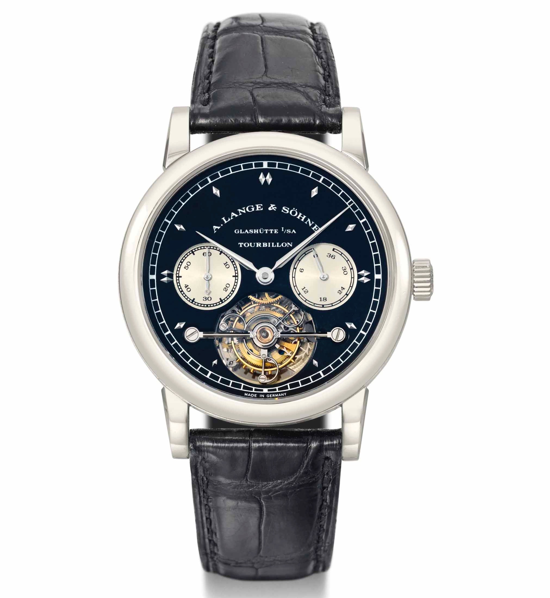 Chiếc đồng hồ đeo tay A. Lange & Söhne tourbillon điểm chuông bằng vàng trắng cực kỳ tinh xảo và độc đáo với cơ chế chain fusee, được sản xuất năm 1998. Chiếc đồng hồ này được bán với giá 437.000 CHF vào ngày 12 tháng 5 năm 2014 bởi đơn vị Christie's ở Geneva