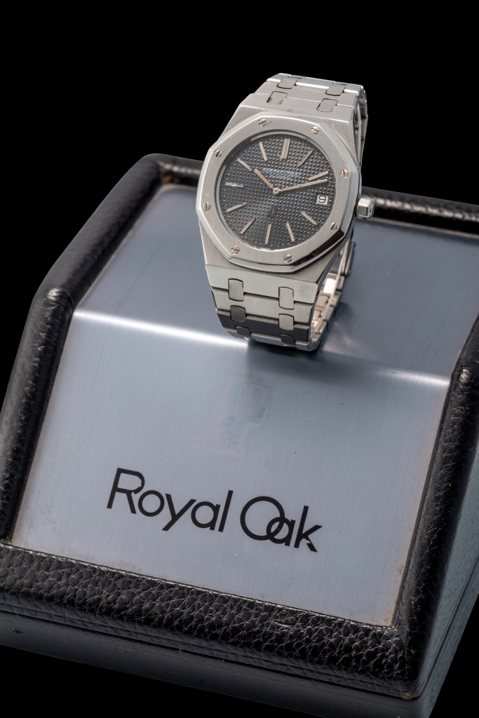 Nằm ở lô 56 là một chiếc đồng hồ có vẻ đẹp hấp dẫn và cực kỳ hiếm làm từ thép không gỉ. Model Royal Oak Series A có giá ước tính: 50.000 - 80.000 EUR | USD | CHF.