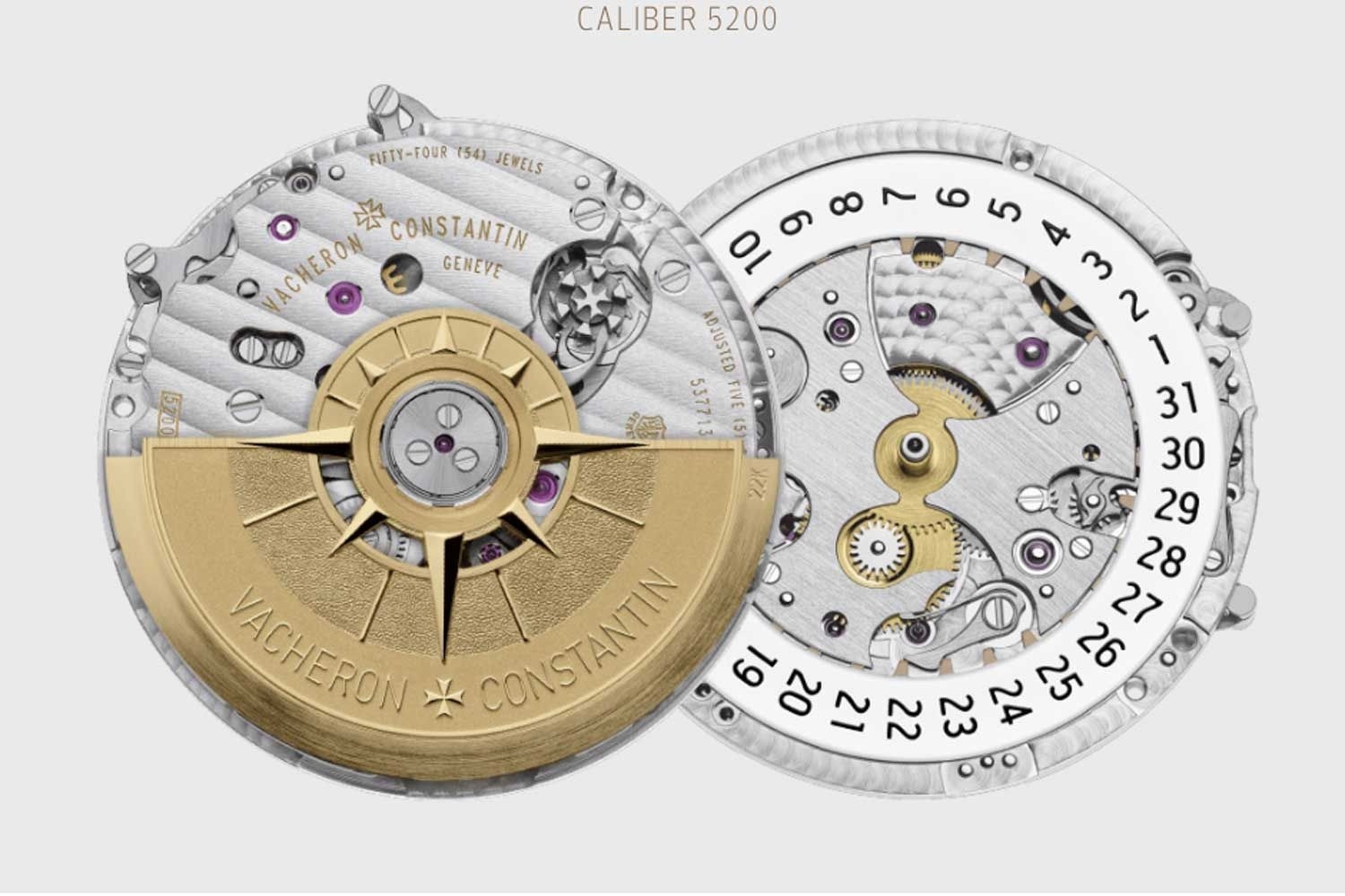 Các hệ thống khớp ly hợp thẳng đứng, chẳng hạn như hệ thống trên chiếc Vacheron Constantin 5200 này thường được ẩn dưới cầu bấm giờ và rotor. Hãy lưu ý cách tiếp cận thiết kế và kỹ thuật cực kỳ khác biệt so với tính nghệ thuật của thương hiệu.