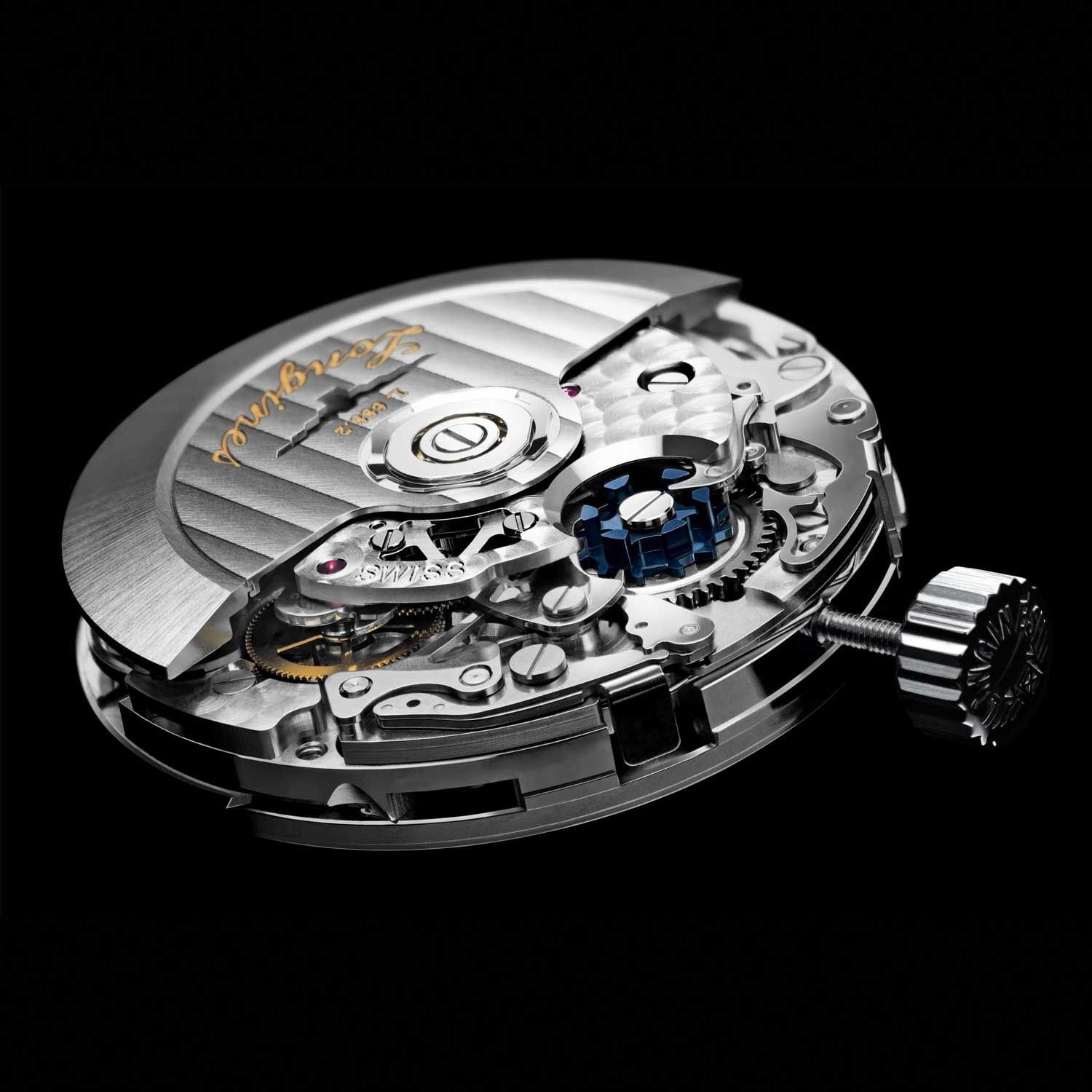 Bộ máy L.688.2 do ETA phát triển, dành riêng cho Longines, rất đáng chú ý nhờ sử dụng khớp nối dọc (ẩn bên dưới rôto và cầu đồng hồ bấm giờ) mà lại đi kèm giá cả phải chăng