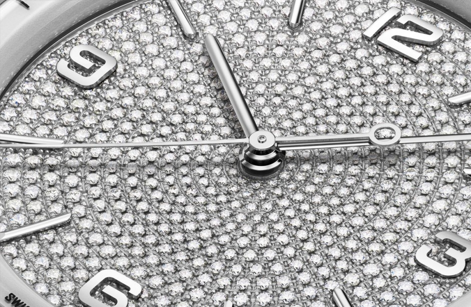 Bên trong mặt số vẫn có mặt các cọc số Ả Rập. Trong khoảng giữa của những con số vẫn tiếp tục được phủ kín kim cương cỡ nhỏ, chứng tỏ hãng muốn đem đến một thiết kế tinh hoa đã được căn chỉnh kỹ lưỡng.