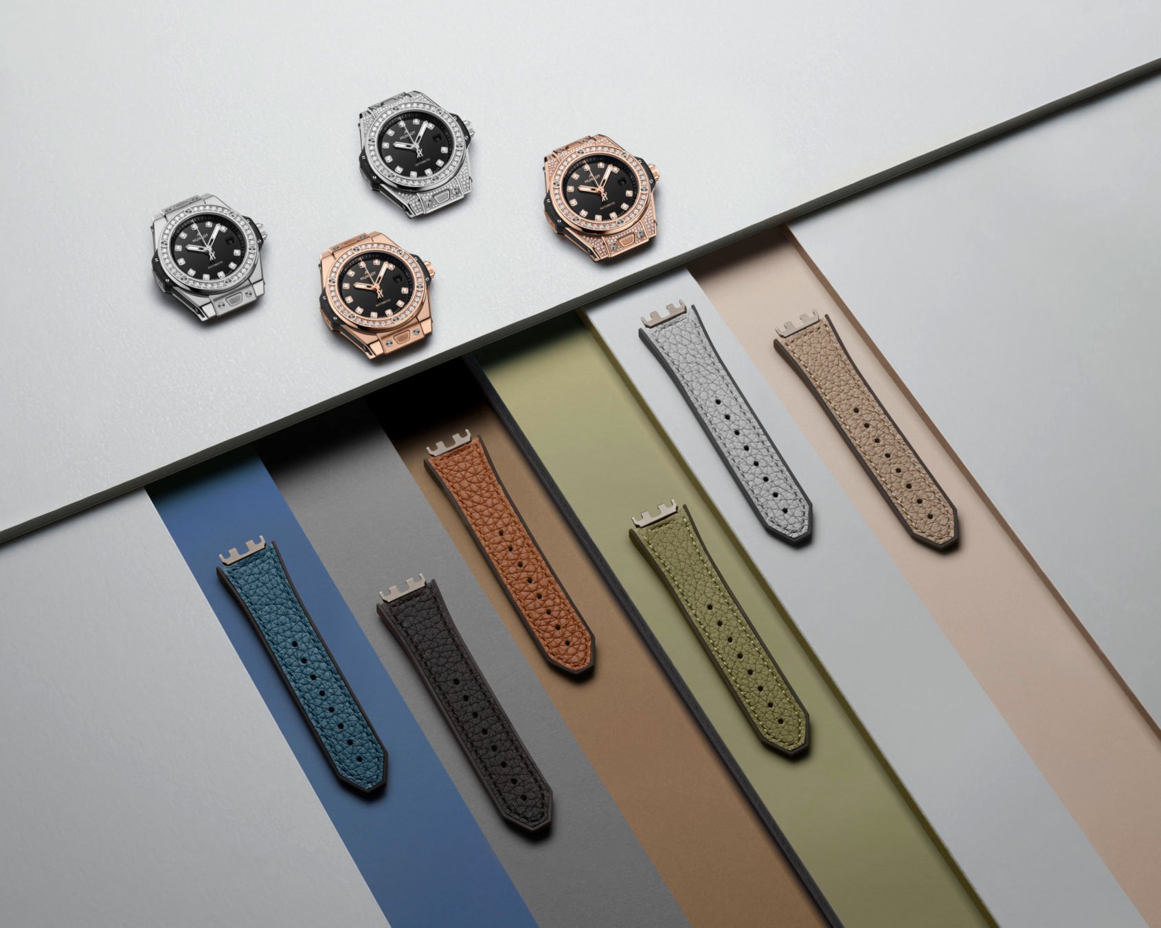 Bởi lẽ đó, Hublot đặc biệt tập trung vào dây đeo - bộ phận kết nối trực quan nhất giữa người đeo và đồng hồ. Trong loạt sản phẩm mới ra, Hublot có cung cấp thêm những sự lựa chọn dây đeo linh hoạt, có thể sử dụng cả trên đồng hồ bằng thép lẫn đồng hồ vỏ King Gold. Loạt dây đeo mới này cũng có sẵn cho các mẫu One Click 39mm và 42mm.
