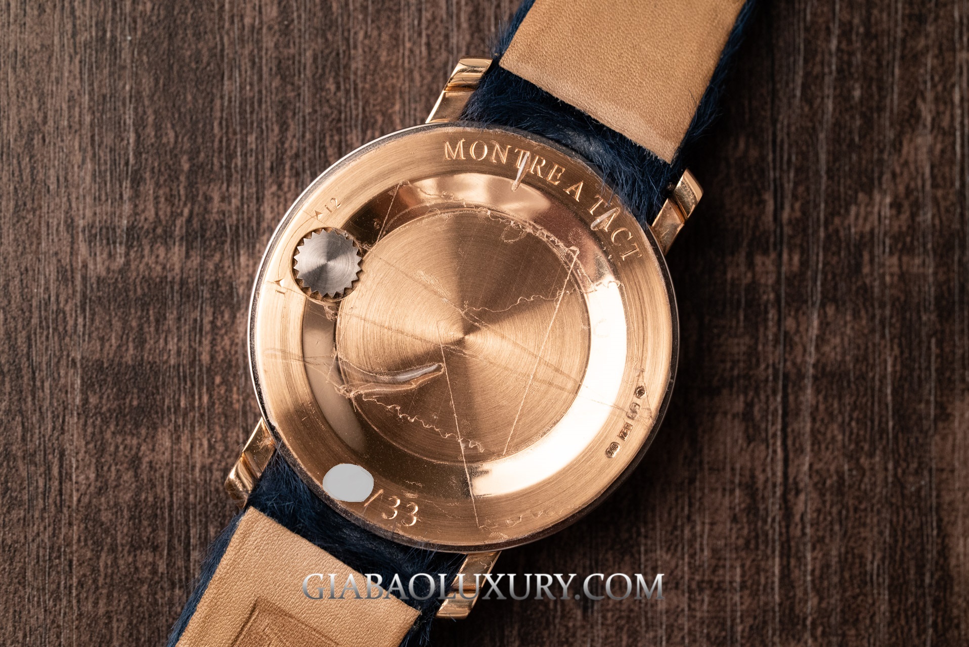 Điểm đặc biệt nhất trên những chiếc Montre à Tact chính là một cửa sổ nho nhỏ ở góc 6h, giúp người dùng có thể xem giờ mà không cần xoay cổ tay. Đây là một thiết kế khá thông minh và ít khi xuất hiện trên đồng hồ đeo tay. Tất nhiên, thiết kế này cũng sẽ yêu cầu một số điểm dặc biệt trên bộ vỏ đồng hồ.