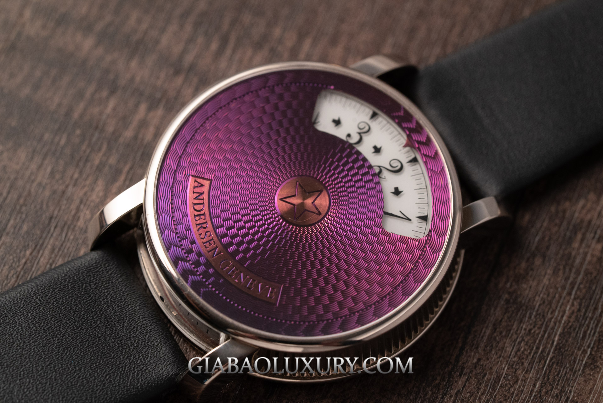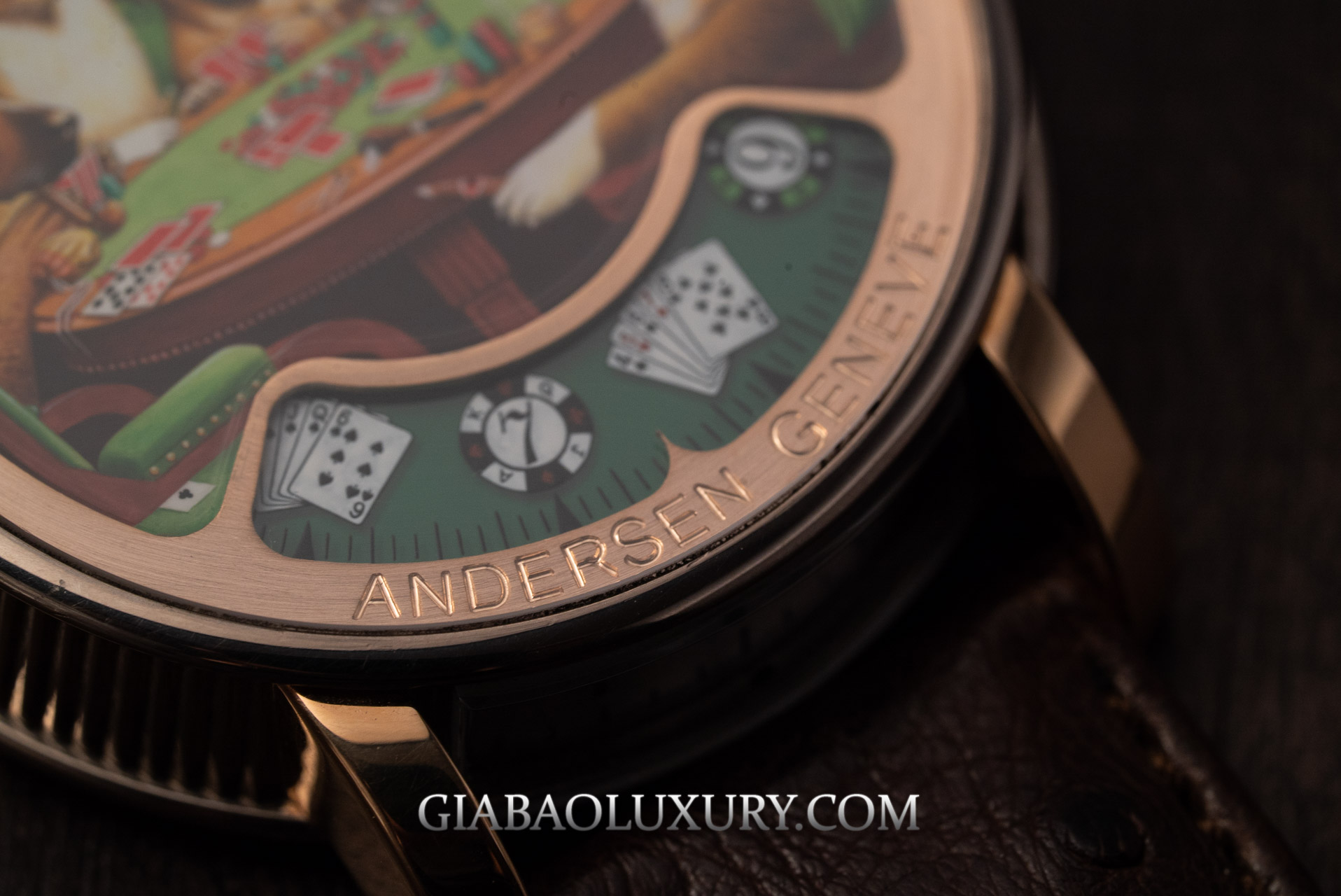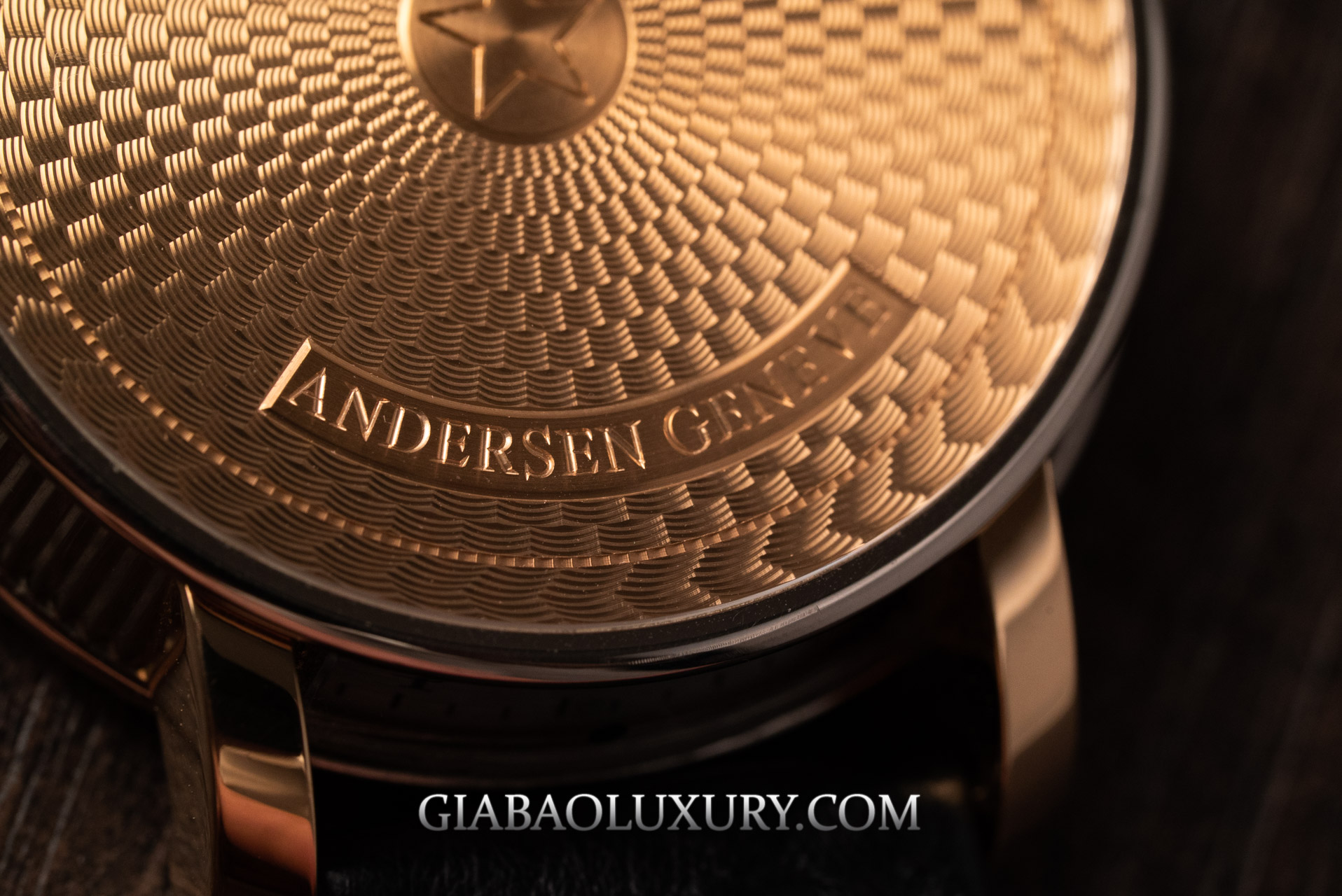Để tạo sự đối xứng hoàn hảo cho bộ vỏ, núm chỉnh giờ được Andersen Geneve sắp xếp và đặt ở mặt đáy đồng hồ. Cơ chế hoạt động của núm chỉnh giờ cũng không có gì phức tạp: người dùng chỉ cần vặn qua vặn lại sao cho đúng với thời gian thực tế, không cần thực hiện những thao tác rút núm như những chiếc đồng hồ thông thường.
