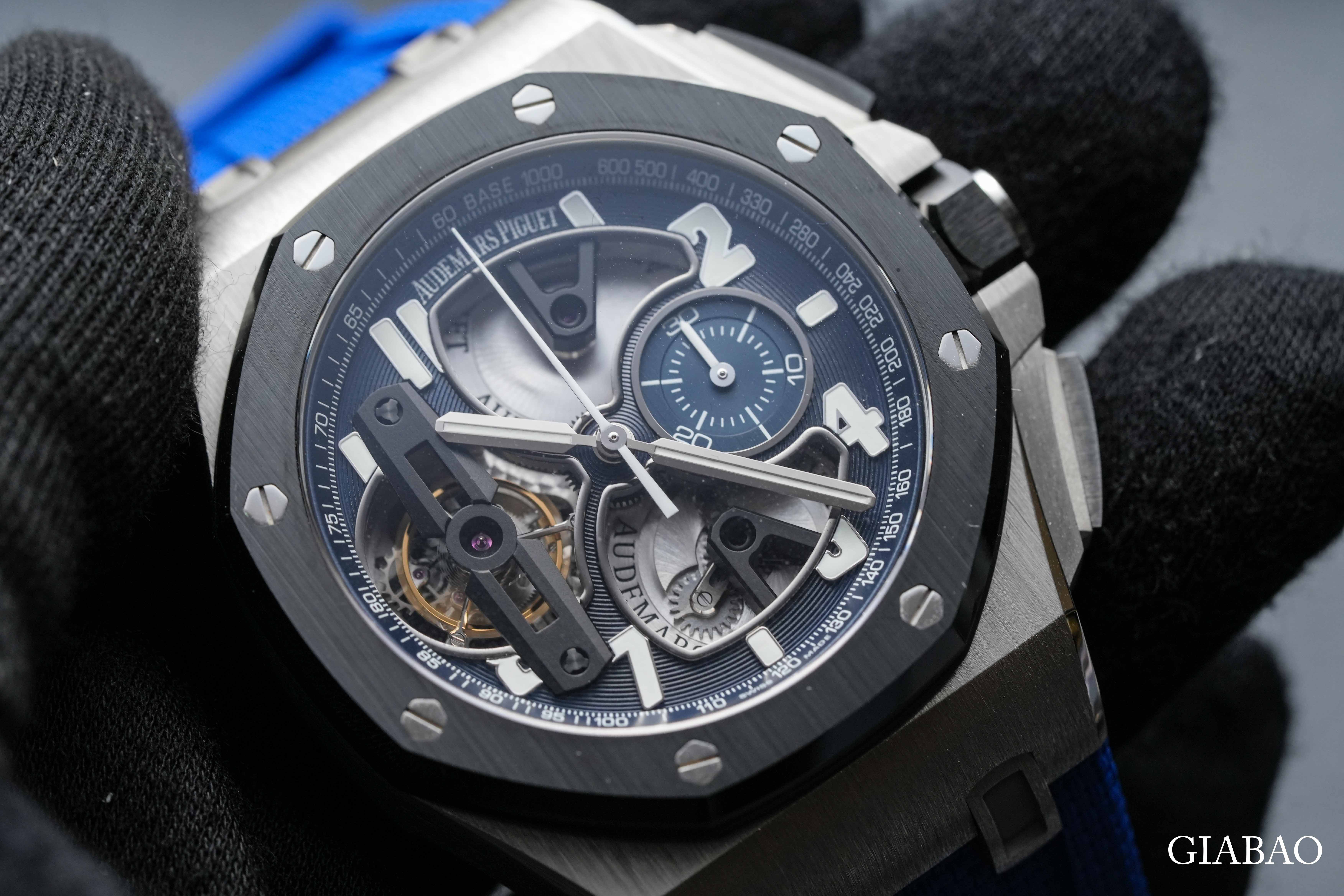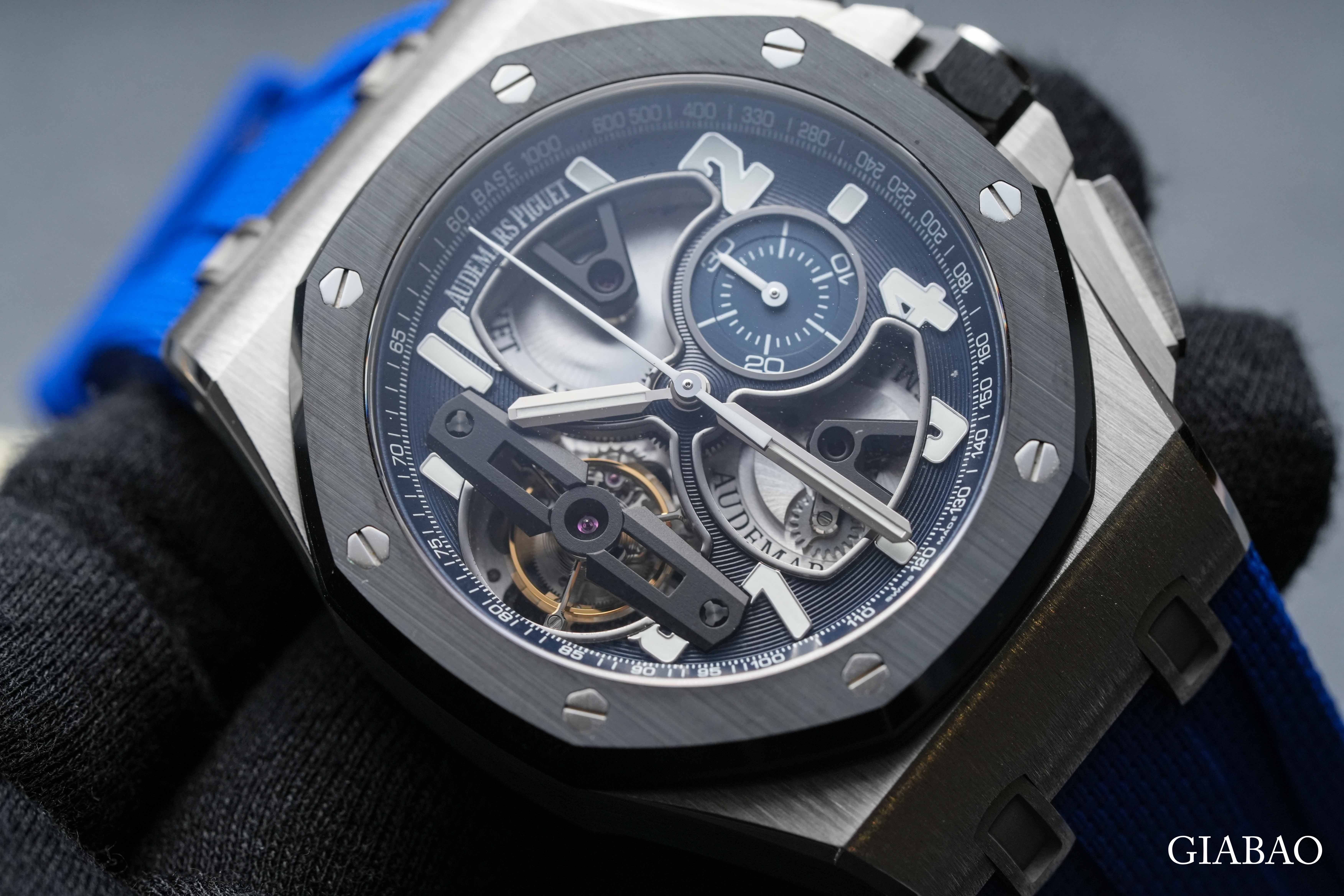 Cận cảnh đồng hồ Audemars Piguet Royal Oak Offshore Tourbillon Chronograph 26388 bạch kim
