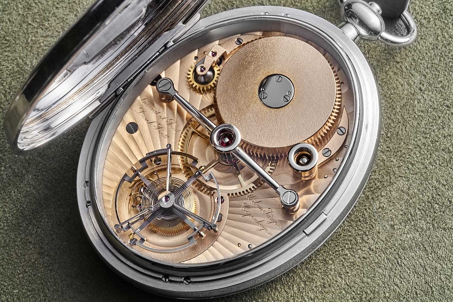 Điểm nổi bật của bộ máy này là tourbillon bay thanh lịch một phút với remontoir một giây được tích hợp vào chính lồng đỡ.
