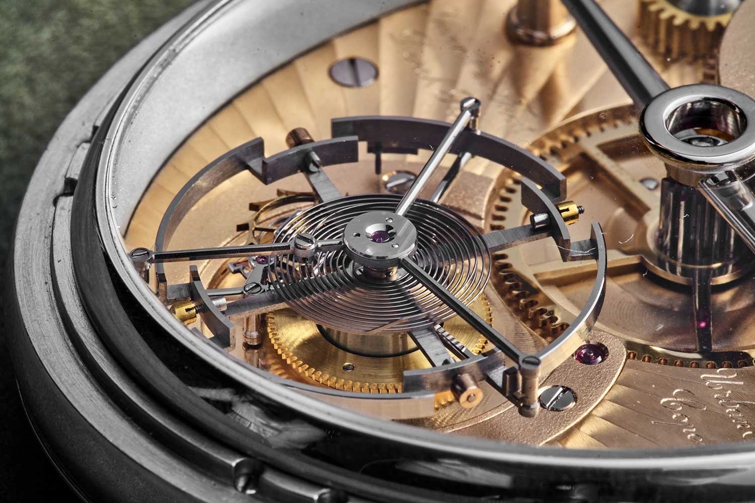 Điểm ấn tượng trong thiết kế này thể hiện ở cấu hình đồng trục độc đáo giữa bánh xe remontoir và bánh xe thoát. Mặc dù cùng trục, bánh xe thoát được thiết kế xoay lỏng, cho phép nó tách biệt khỏi bánh xe remontoir. Nhờ đó, thùng cót cung cấp năng lượng trực tiếp cho tourbillon, trong khi lò xo remontoir đảm bảo nguồn năng lượng ổn định cho bộ thoát và bánh xe cân bằng. Việc tách biệt này giúp cô lập bộ thoát khỏi các biến động từ bộ truyền động và tourbillon, từ đó đảm bảo năng lượng truyền đến bánh xe cân bằng luôn ổn định và chính xác.