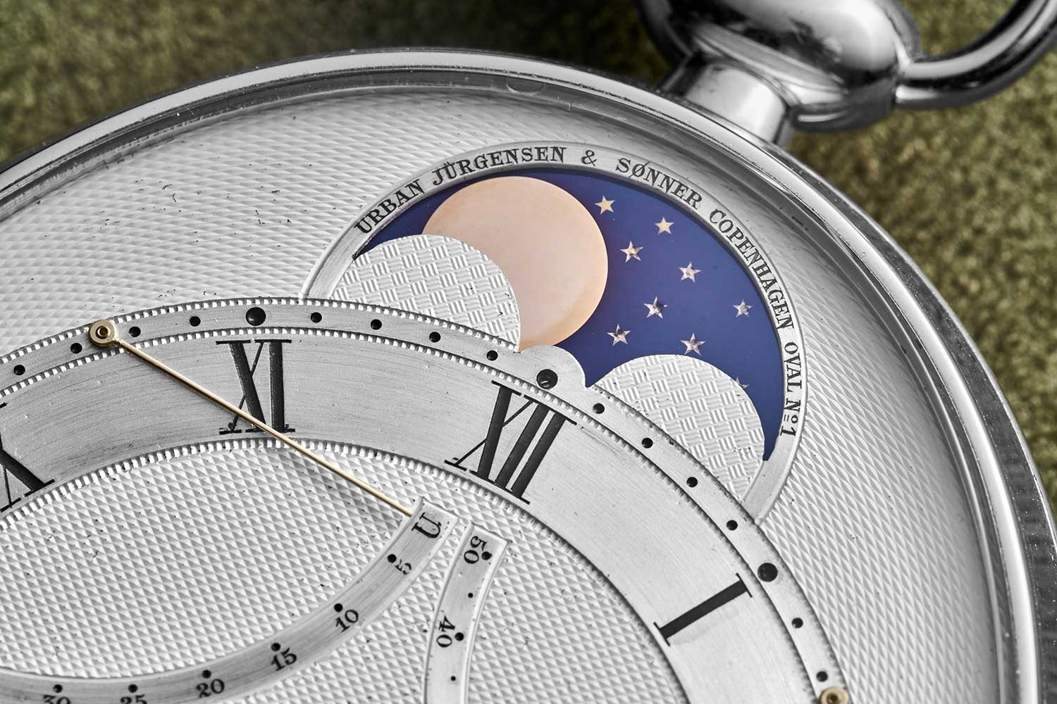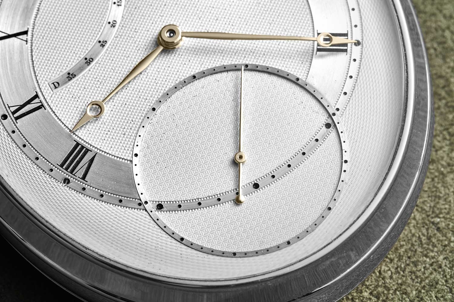 “Việc kết hợp hoàn hảo giữa hình bầu dục của mặt đồng hồ và hình dạng của vỏ đồng hồ là một thử thách lớn. Kỹ thuật guilloché của Derek thật sự độc đáo và đã truyền cảm hứng sâu sắc cho tôi.” Phần trung tâm của mặt đồng hồ được tô điểm bởi những đường vân kim cương thẳng (hoặc đinh tán), tạo nên vẻ đẹp sang trọng và hiện đại. Trong khi đó, mặt số phụ có pha mặt trăng và giây nhỏ lại mang vẻ đẹp cổ điển với họa tiết đan rổ, một trong những họa tiết guilloché khó thực hiện nhất.