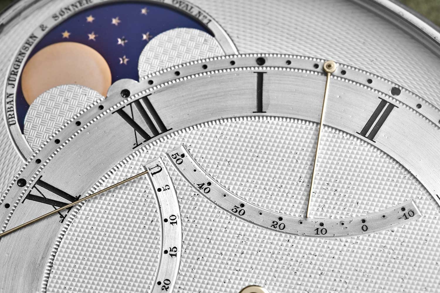 Được làm bằng bạc nguyên chất, mặt đồng hồ Oval cực kỳ tinh xảo với các họa tiết khác nhau được kết hợp vào họa tiết chính để phân định thành các mặt hiển thị chức năng khác nhau. Bao bên ngoài là hoạ tiết guilloche hình hạt lúa được thực hiện bằng máy tiện hoa hồng (rose engine). Thách thức đặt ra đến từ hình hạng oval thay vì tròn như đồng hồ truyền thống. Người nghệ nhân đã phải đối mặt với những thách thức kỹ thuật cao, đòi hỏi sự tinh tế và tỉ mỉ trong từng đường nét.