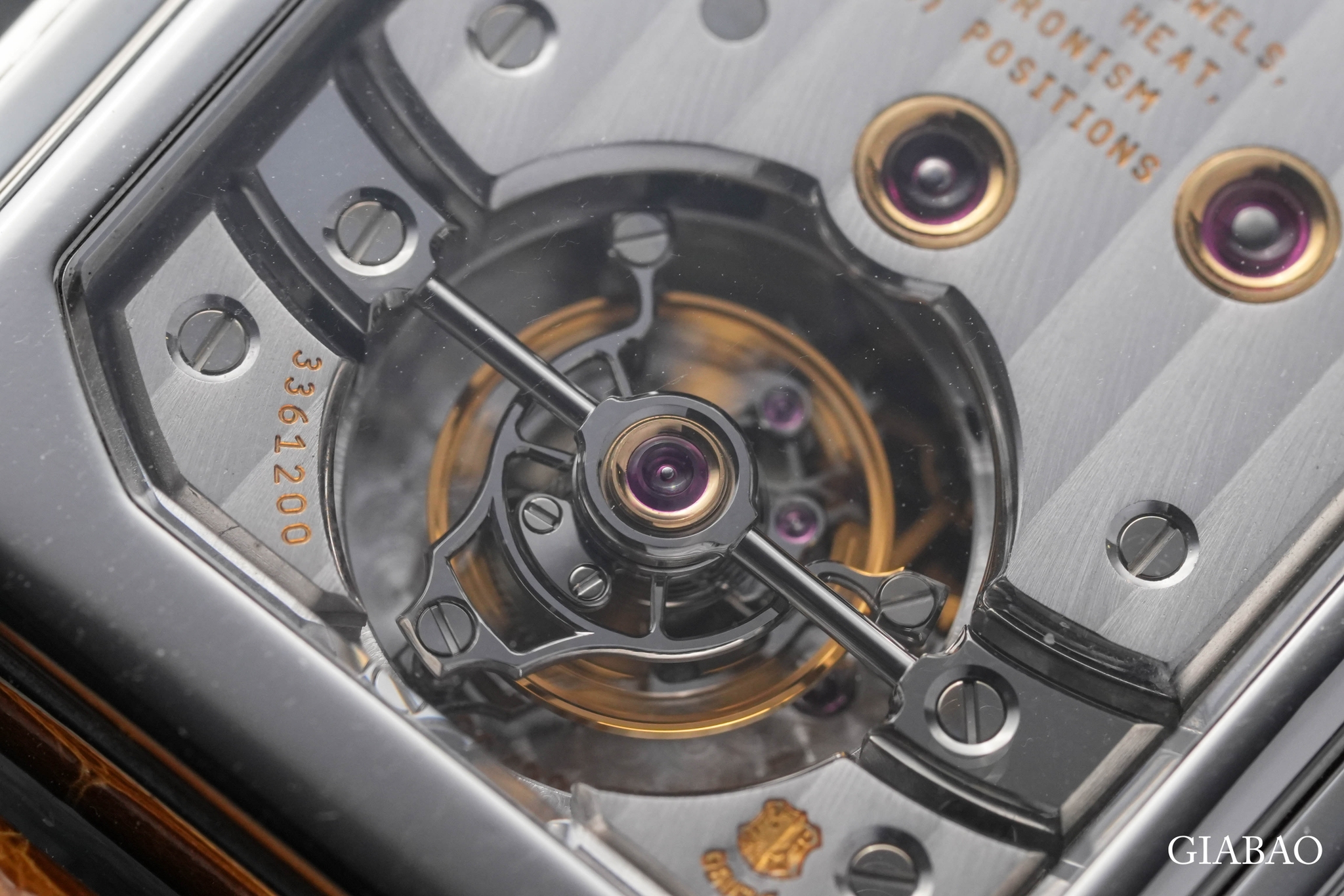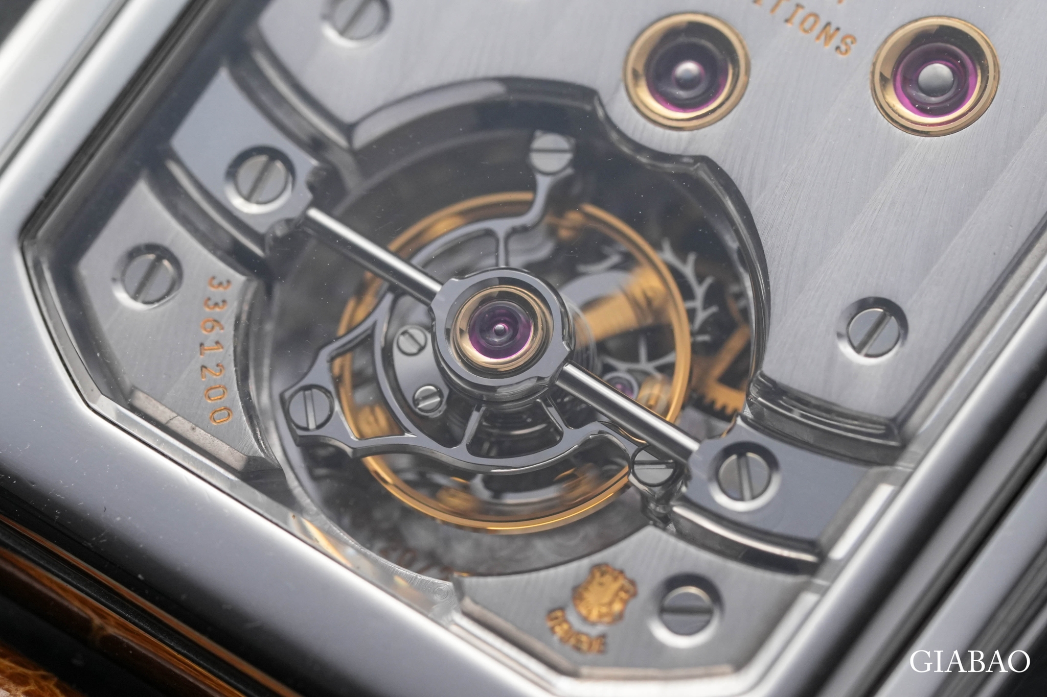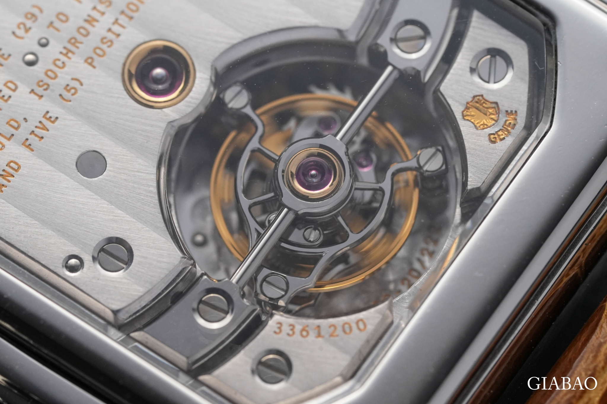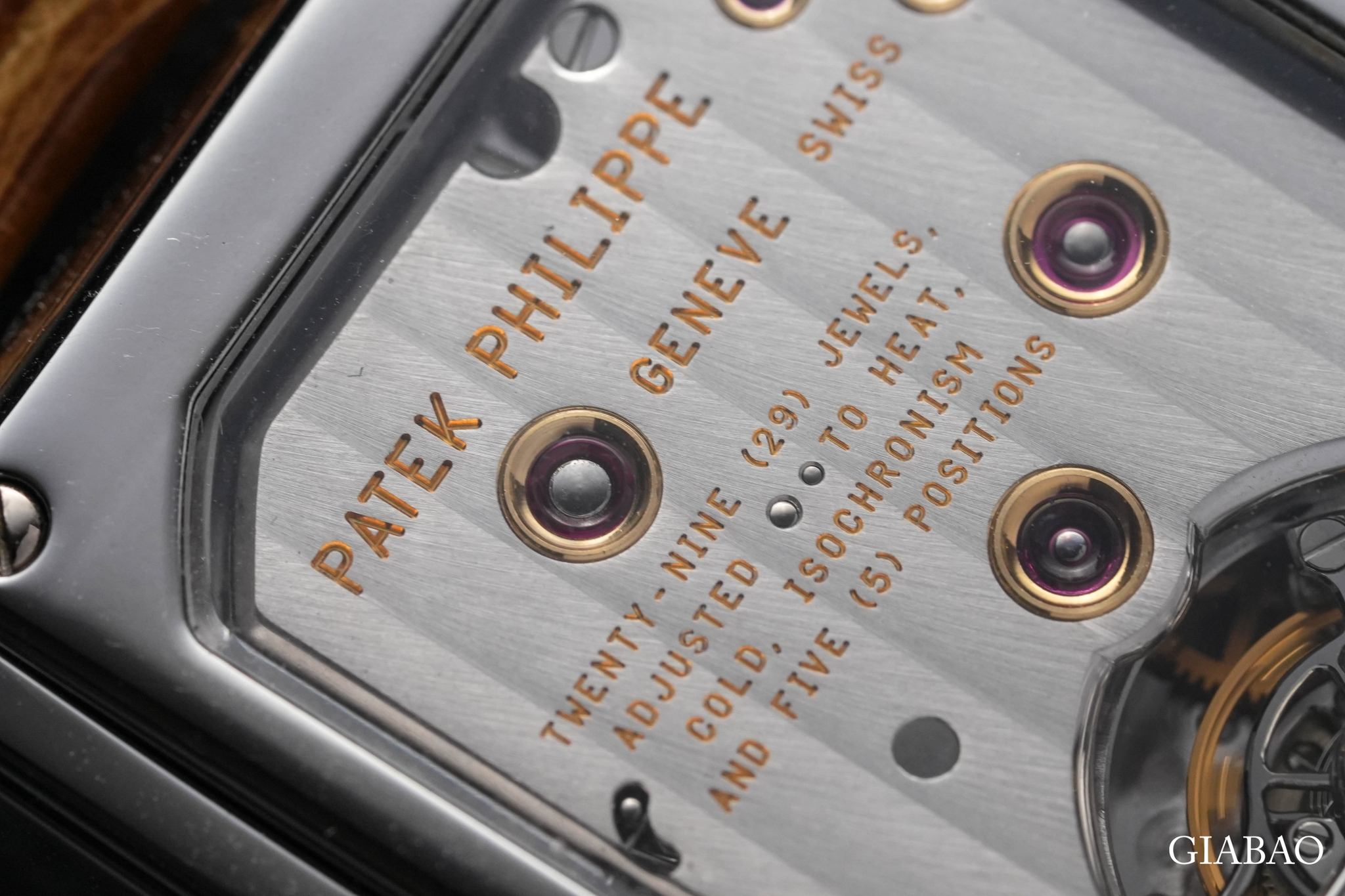 Cũng không thiếu các chaton vàng bọc lấy chân kính chắc chắn nằm rải rác trong khi xung quanh là tấm khung được chải sọc Geneva đều đặn. Patek Philippe đã chia sẻ, hai phần trụ đỡ của lồng tourbillon được làm tròn đều bằng tay, điều mà một người thợ đồng hồ bậc thầy có kinh nghiệm phải mất hai ngày liên tục để hoàn thành.