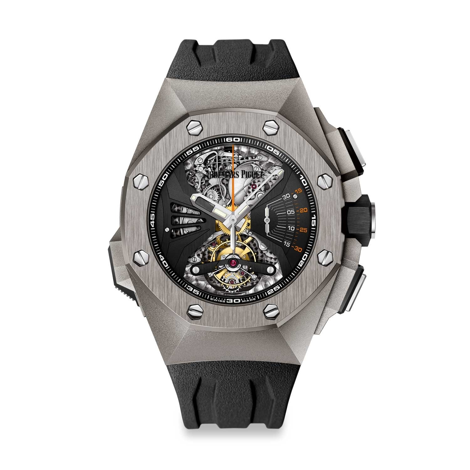 Giống mẫu đồng hồ Audemars Piguet Tourbillon Selfwinding Ra từ năm 1986, thương hiệu sử dụng titan cho phần lồng tourbillon. Lược bỏ bánh răng thứ tư nằm bên dưới bộ thoát và bộ phận cân bằng, thay thế bằng hệ thống truyền động phía ngoài, AP đã giảm được bề dày của bộ máy đồng hồ để có thể “nhét vừa" bộ vỏ của chiếc Jumbo 39mm.