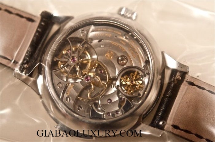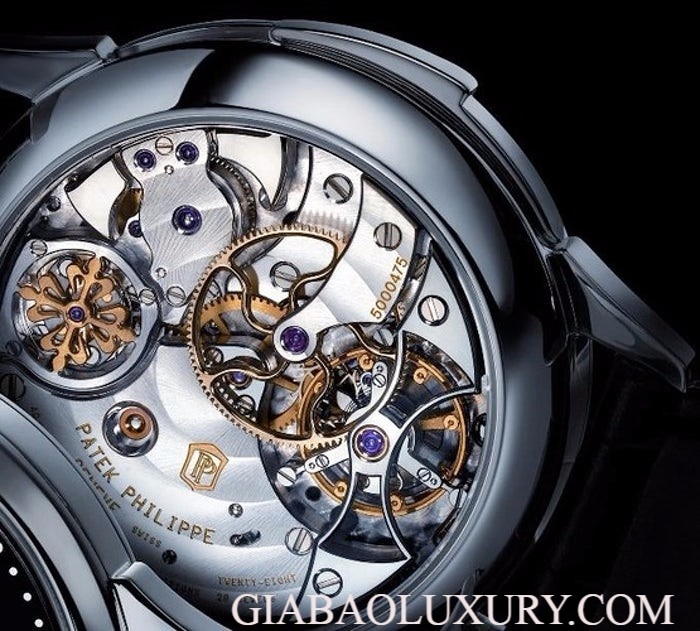 Tại sao Gia Bảo Luxury lại có nhận định như vậy, đầu tiên chúng ta cần biết đây là một chiếc đồng hồ sở hữu cỗ máy Patek Philippe caliber R TO 27 PS hội tụ đến 2 cơ chế vô cùng phức tạp, đó chính là cơ chế điểm chuông 2 gông (minute repeater) và Tourbillon. Từ quá khứ cho đến hiện tại, người muốn sở hữu đồng hồ Patek Philippe có “dù chỉ một” chức năng này thôi cũng đã phải chi một “núi tiền”. Cơ chế điểm chuông giải thích ngắn gọn là chức năng khi gạt lẫy sẽ phát ra những tiếng chuông với mục đích thông báo thời gian. Còn chức năng Tourbillon trên lí thuyết là giúp giảm trọng lực tác động lên bộ điều hòa (Balance) từ đó đồng hồ sẽ chạy chính xác hơn, tuy nhiên trên thực tế không hoàn toàn như vậy, Tourbillon mang tính chất “trình diễn” một cỗ máy phức tạp cũng như trình độ của nghệ nhân chế tác nhiều hơn tính hữu dụng.