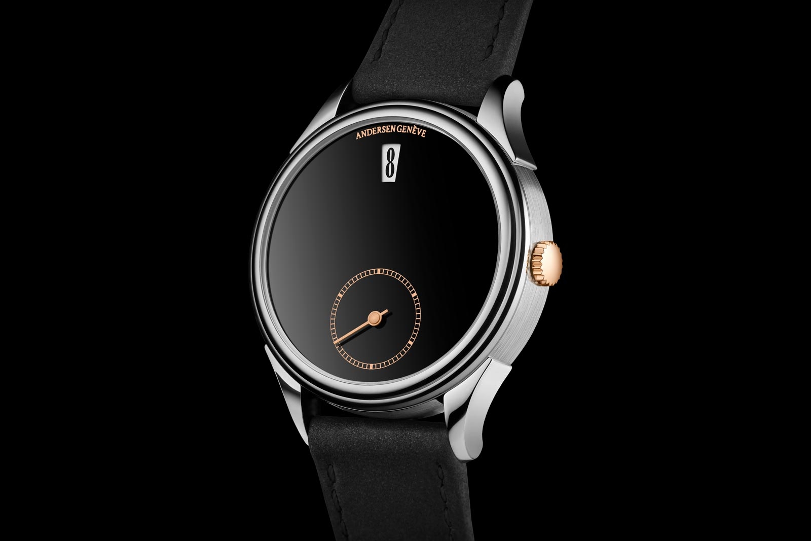 Gợi nhớ đến những chiếc đồng hồ bỏ túi giờ nhảy cổ điển với mặt đồng hồ đơn giản không quá cầu kỳ, Andersen Genève Jumping Hours đã đạt được thành công đáng nể. Có rất nhiều phiên bản khác nhau của mẫu đồng hồ này đã được sản xuất chia thành nhiều màu sắc, nhiều kiểu trang trí. Mặc dù trông có vẻ đơn điệu ở khoảng cách xa, nhưng mặt đồng hồ màu đen của phiên bản Andersen Genève Jumping Hours hiện tại lại thu hút theo một cách riêng. Và đôi mắt của chúng ta sẽ như bị thôi miên khi nhìn vào chiếc đồng hồ này ở khoảng cách gần.