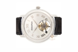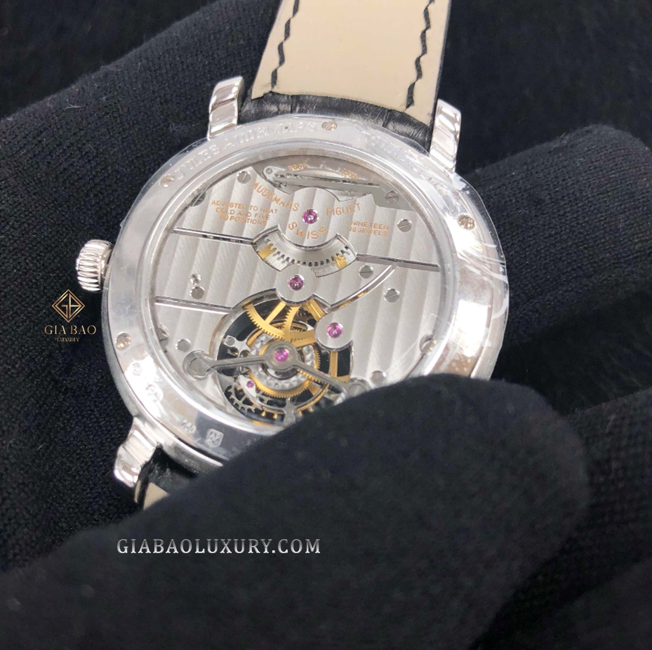 Dưới lớp kính sapphire chống trầy xước hiệu quả là mặt số màu bạc xám chải tia sunbusrt tạo hiệu ứng phản xạ ánh sáng Mặt Trời cực kỳ thú vị. Ở phiên bản đồng hồ này, nhà sản xuất đã sử dụng hệ thống cọc số La Mã bằng thép được đính nổi tạo điểm nhấn, trung tâm mặt số là bộ kim dáng dauphine mềm mại, bóng bẩy. Nhưng gây ấn tượng nhất là lồng tourbillon ở góc 6 giờ đã phô diễn vẻ đẹp lộng lẫy, phức tạp của một phần bộ chuyển động bên trong đồng hồ.