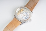 Mặt sau chiếc đồng hồ được thiết kế lộ máy, tức là bạn có thể xem toàn bộ máy sau lớp kính sapphire chống lóa. Cỗ máy đồng hồ cho phái đẹp không nhất thiết phải theo một chuẩn mực nhất định, chiếc đồng hồ này được trang bị bộ máy lên cót tay (thường chỉ thấy ở đồng hồ cho nam giới) caliber 5201 được sản xuất toàn bộ inhouse tại hãng. Khả năng tích cót lên tới 49 tiếng, đủ cho bạn tháo đồng hồ ra vào ngày cuối tuần mà kho lo chết máy.