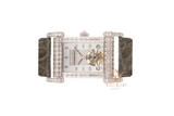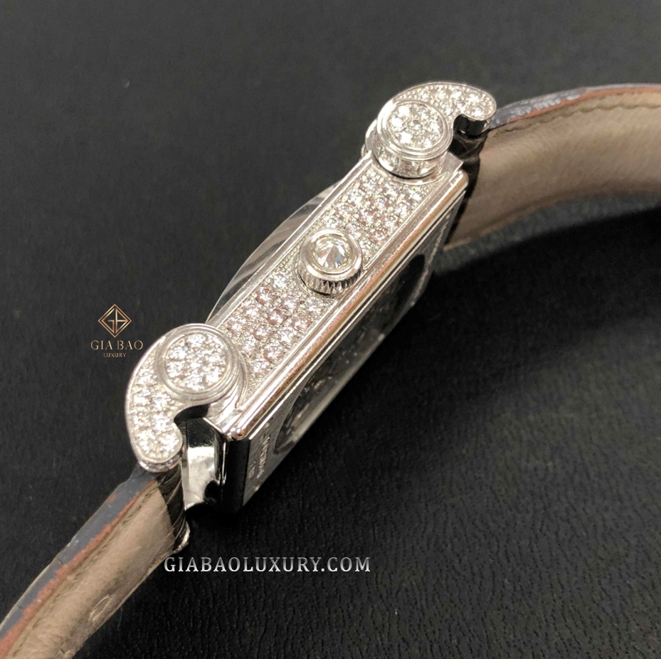 Audemars Piguet Canapé Tourbillon 25951BC có bộ vỏ hình chữ nhật vuông vức. Hai cạnh bên đồng hồ là những viên kim cương dạng ống, tạo nên giá trị nổi bật. Bộ vỏ đồng hồ có kích thước 28mm và được làm từ vàng trắng càng tô điểm lên vẻ đẹp tinh khiết và trong trẻo của hệ thống kim cương. Đặc biệt linh hoạt, càng nối dây trên chiếc đồng hồ hiện tại có thể chuyển động để có thể dễ dàng ôm trọn cổ tay.