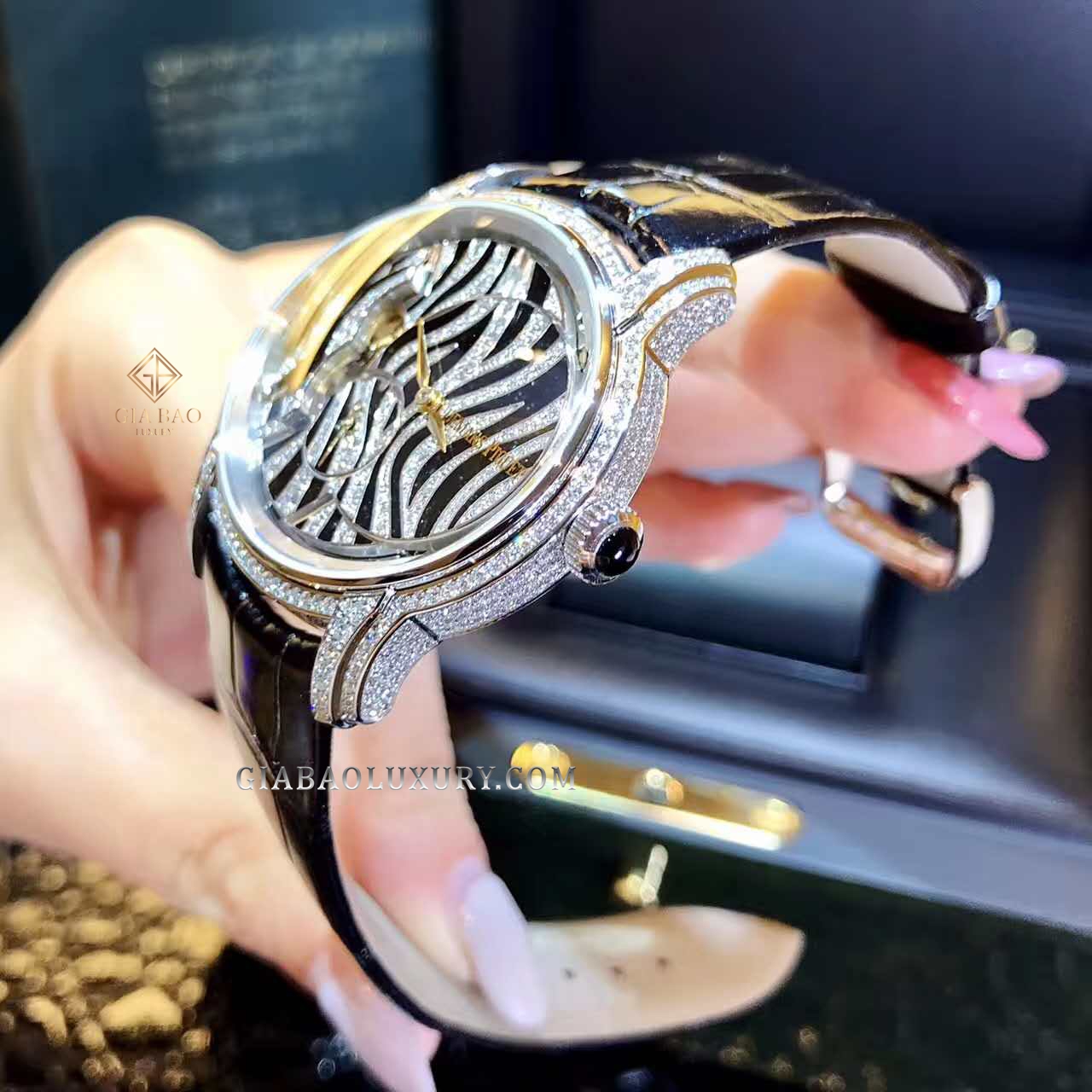 Audemars Piguet Millenary 77249BC.ZZ.A102CR.01 được nhà sản xuất đề cập là một chiếc đồng hồ dành cho nữ giới, và theo Gia Bảo Luxury đánh giá, chiếc đồng hồ đã được gia tăng thêm vẻ cá tính, dẻo dai của những chú ngựa vằn khi phô bày trước mắt người xem là mặt số hình oval và những phần vằn đen trắng là những khoảng kim cương nạm vào phần vàng trắng, trong khi vằn đen là lớp mã não đen tuyền kiểu cách.