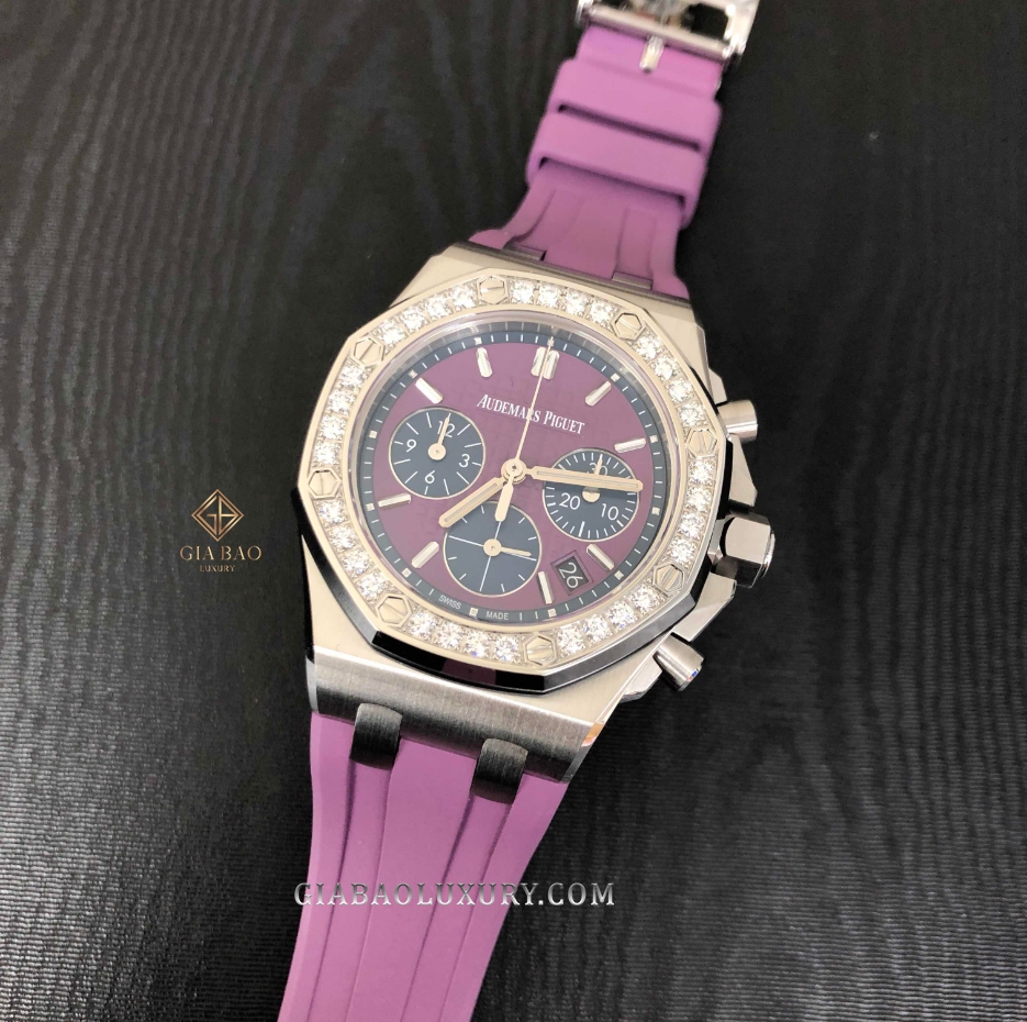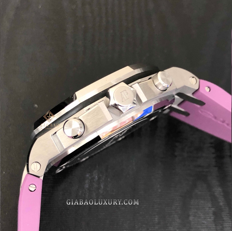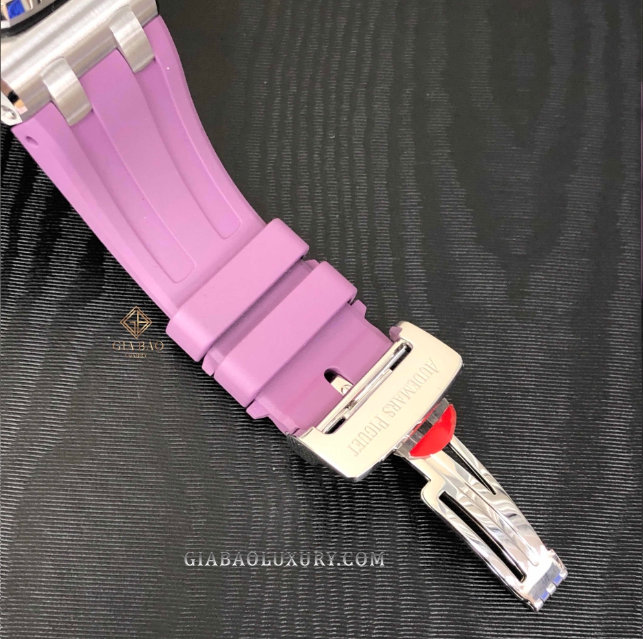 Sở dĩ gọi là trái nho chín mọng, ngọt vị bởi vì đồng Hồ Audemars Piguet Royal Oak Offshore 26231ST.ZZ.D075CA.01 hiện lên với tông màu tím đầy nổi bật và đầy cảm hứng. Dây đeo cao su nối với bộ vỏ bằng thép không gỉ hay mặt số bên trong với vân Lady-Tapisserie cũng đều là một màu tím thống nhất. Bộ vỏ đồng hồ được làm trong chất liệu thép không gỉ với kích thước là 37mm đã đảm bảo cho Royal Oak Offshore 26231ST.ZZ.D075CA.01 khả năng kháng nước mức 50m, vừa vặn để các quý cô rửa tay hay chẳng may gặp phải cơn mưa rào tại xứ sở nhiệt đới như mảnh đất hình chữ S này.