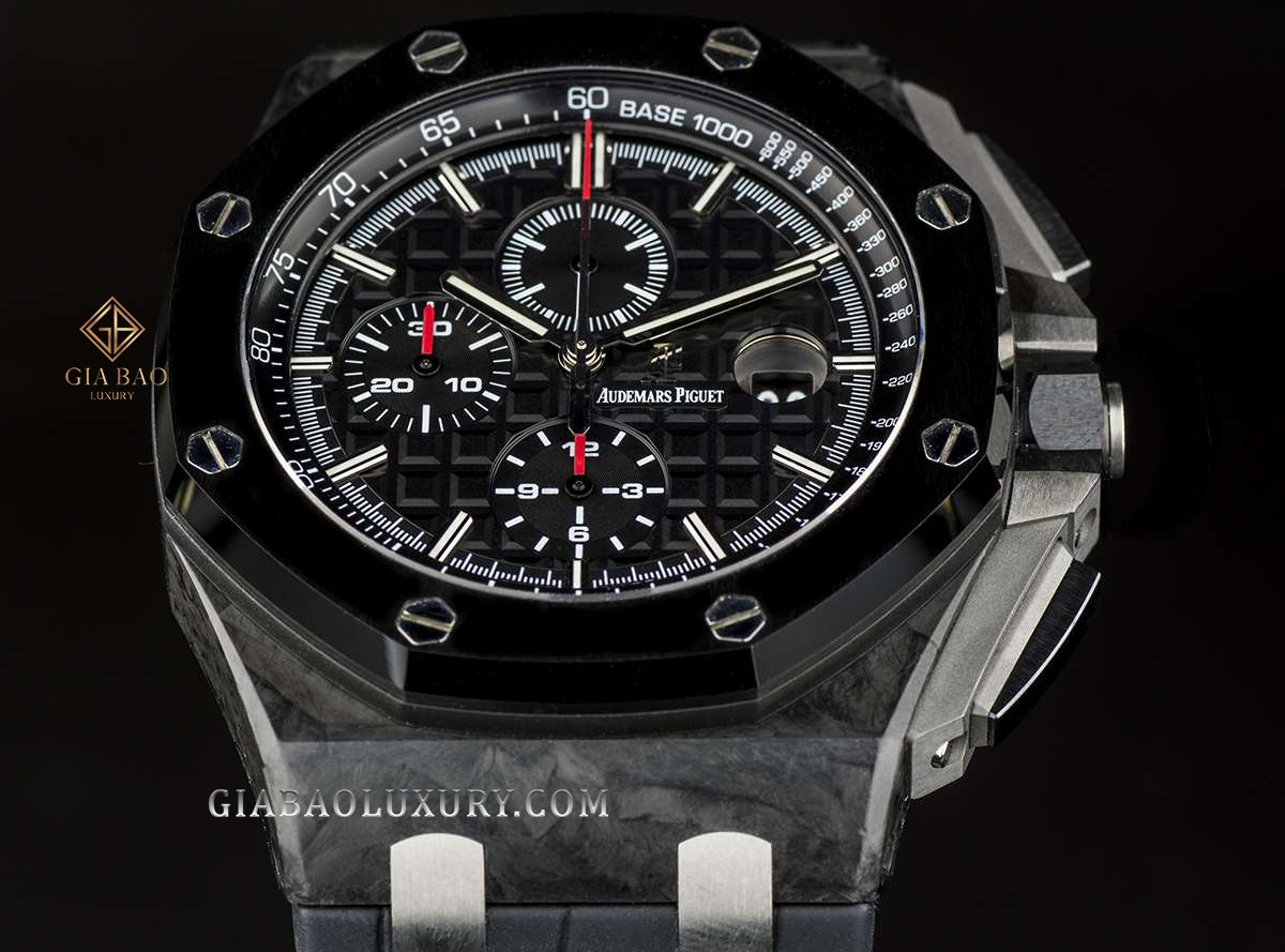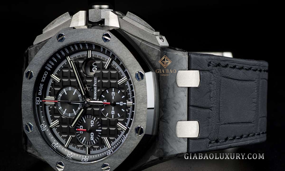 Trong bài viết lần này, Gia Bảo Luxury rất hân hạnh được giới thiệu đến bạn đọc phiên bản Audemars Piguet Royal Oak Offshore 26400AU.OO.A002CA.01 phiên bản nam với sức hấp dẫn mạnh mẽ. Thay vì sử dụng các chất liệu quen thuộc như vàng gold, vàng hồng, thép không gỉ hay titanium, chiếc đồng hồ này lại được làm từ sợi cacbon màu đen có đặc trưng là độ cứng bền cao, trọng lượng thấp, kháng hóa chất cao và khả năng chịu nhiệt tuyệt vời. Chất liệu này thường được sử dụng phổ biến trong ngành hàng không, chế tác vũ khí quân sự và có giá thành khá cao trên thị trường.