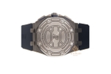 Bộ vỏ của mẫu đồng hồ này có đường kính 42 mm được chế tác bằng Titanium, với mức chống nước ở độ sâu 100m. Vành bezel thiết kế hình bát giác đồng hồ có đặc trưng được chải xước tỉ mỉ cùng với đó là 8 đinh ốc biểu tượng được bố trí đều đặn. Núm chỉnh giờ bên phải bộ khung hình đinh ốc lục giác được khắc nổi 2 chữ AP.