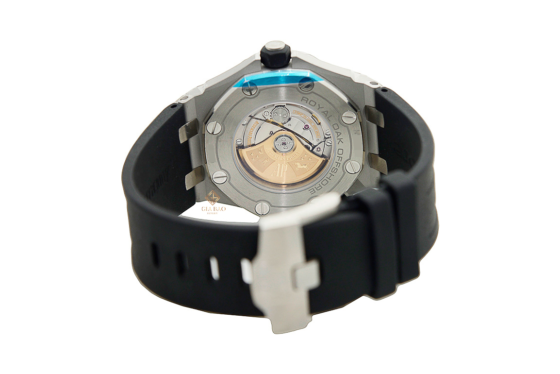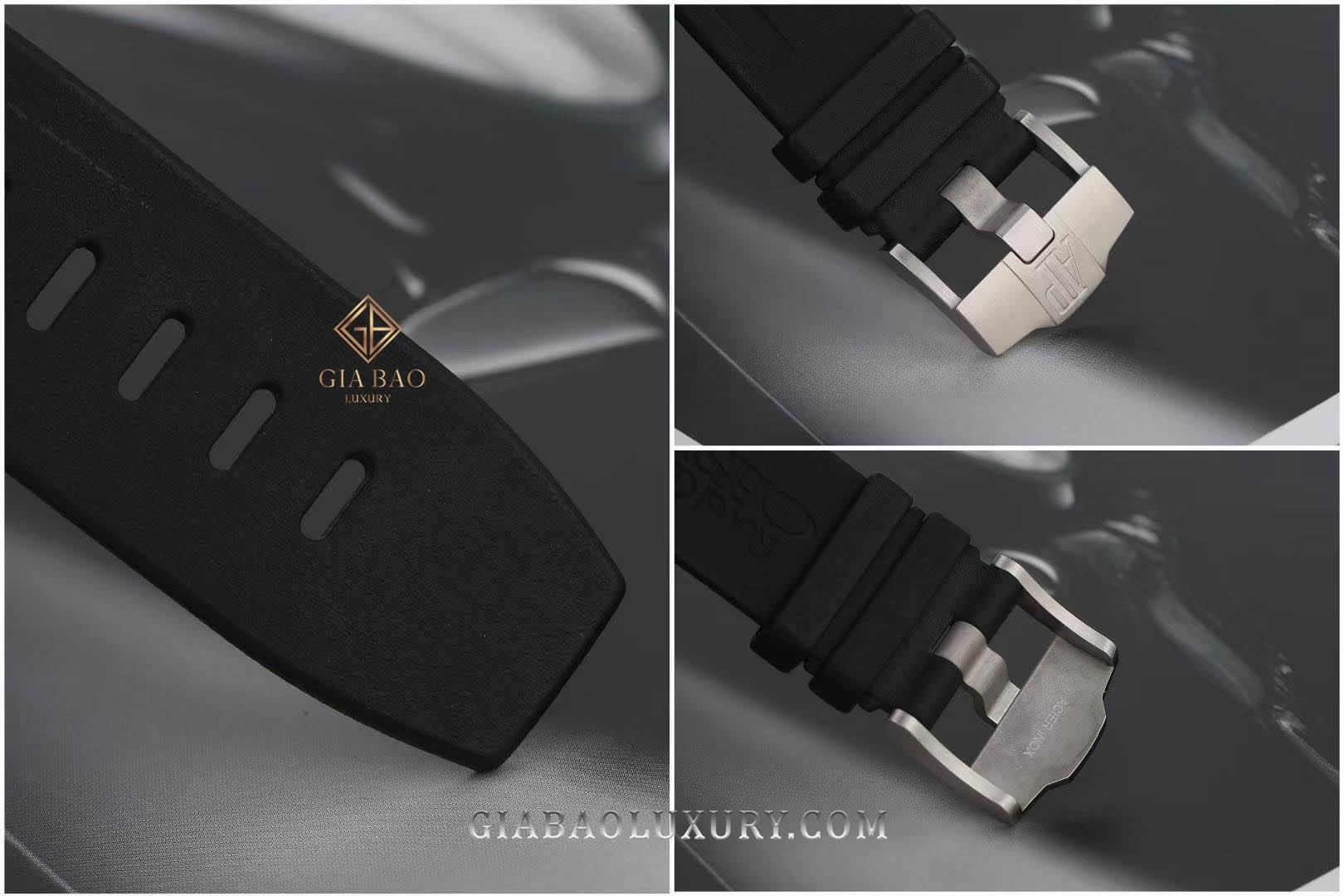 Tiếp đó, chúng ta cũng không thể bỏ qua sự hoàn thiện của mẫu dây đeo màu xám đen làm từ cao su - một trong những cải tiến của Audemars Piguet. Màu sắc của dây là lựa chọn hoàn hảo, tạo nên vẻ đẹp tương phản với màu sắc tổng thể của sản phẩm. Bên cạnh đó, chất liệu cao su cũng được nhiều khách hàng đánh giá là mang lại trải nghiệm khá thoải mái, nhẹ nhàng khi đeo.