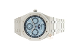Chiếc Audemars Piguet Royal Oak Perpetual Calendar vẫn mang kích thước 41mm, bộ vỏ Platinum có trọng lượng 238g. Vẻ đẹp của nó không chỉ đến từ bộ vỏ bạch kim sáng bóng mà còn là mặt số màu Ice Blue đáng kinh ngạc với các vòng có màu xanh hải quân có sự tương phản cao xung quanh các mặt số phụ. Nói qua về bộ vỏ Platinum thì đa số chúng ta đều biết rằng đây là chất liệu có độ cứng rất cao và có độ lì, trong quá trình sử dụng không phải là không bị xước nhưng về lâu dài thì vẫn giữ được độ sáng bóng của bộ vỏ. Có thể khẳng định rằng, với chất liệu Platinum thì càng dùng lâu sẽ càng bóng.