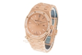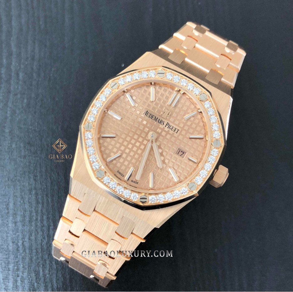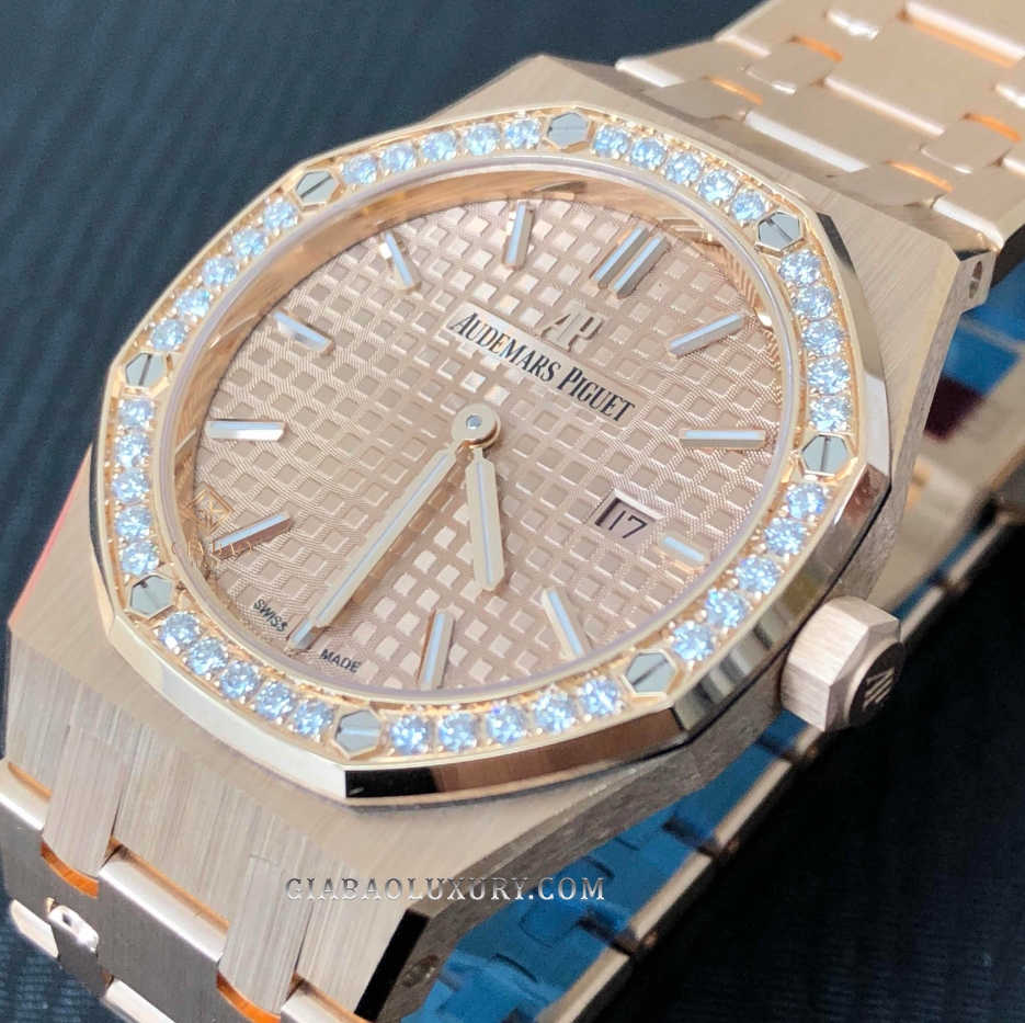 Mẫu đồng hồ này sở hữu tất cả những gì tinh túy nhất của dòng Royal Oak, nhưng được thay đổi để phù hợp hơn với phái đẹp. Điều đầu tiên cần nhắc tới đó chính là đường kính vỏ được giảm xuống 33mm vừa vặn với cổ tay mảnh mai của các quý cô. Không chỉ thế, vành bezel bát giác cũng được nạm 40 viên kim cương để tăng thêm phần lấp lánh và sang trọng.