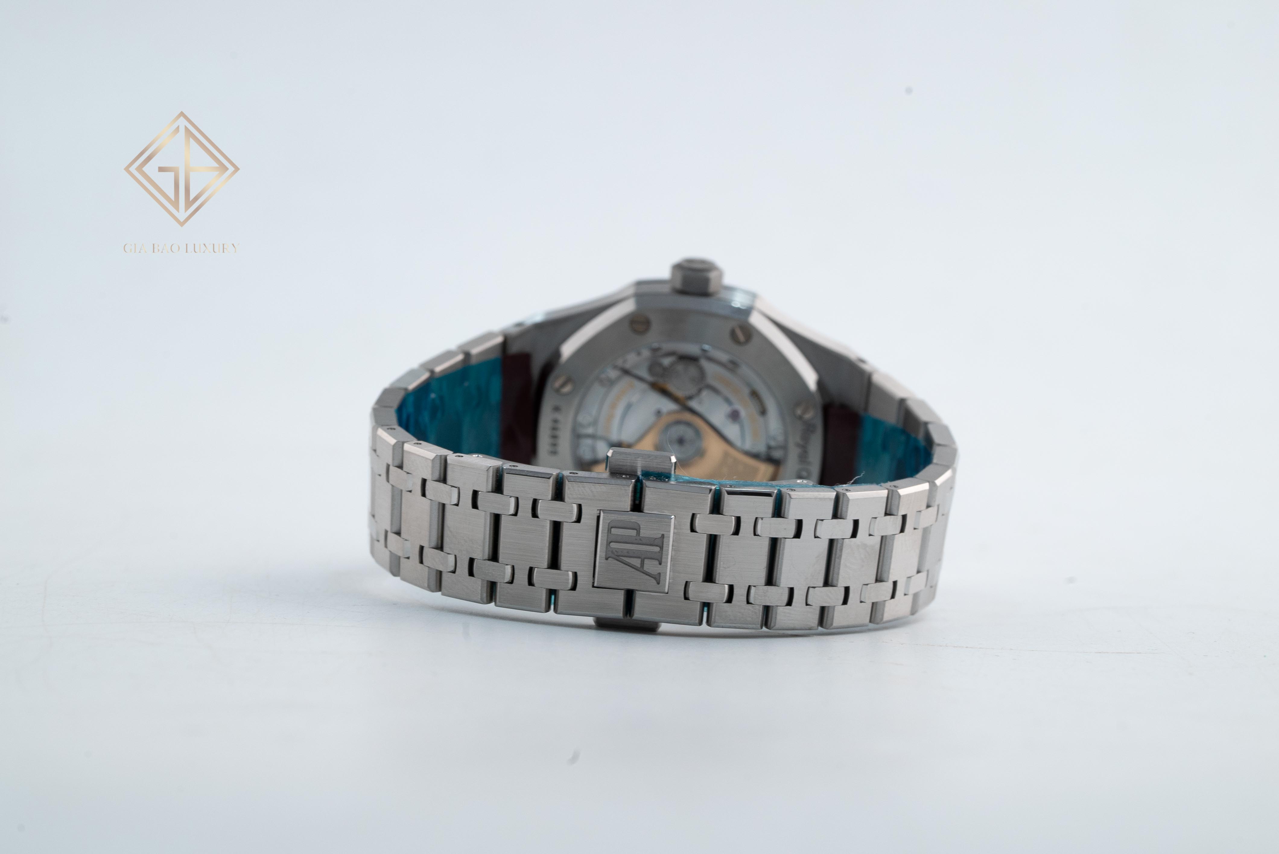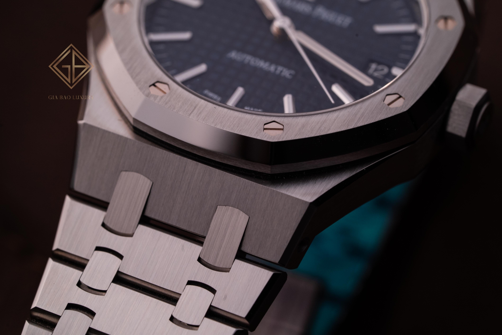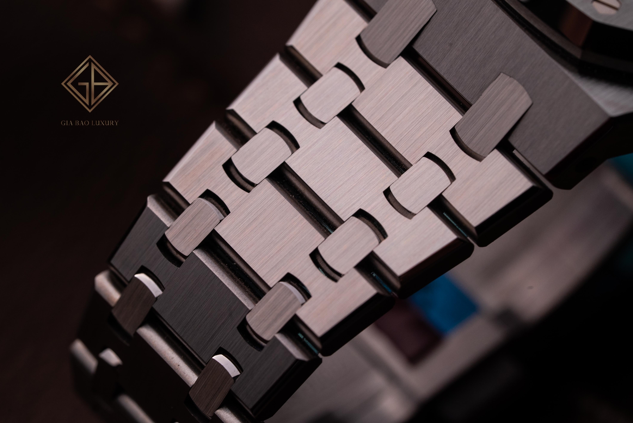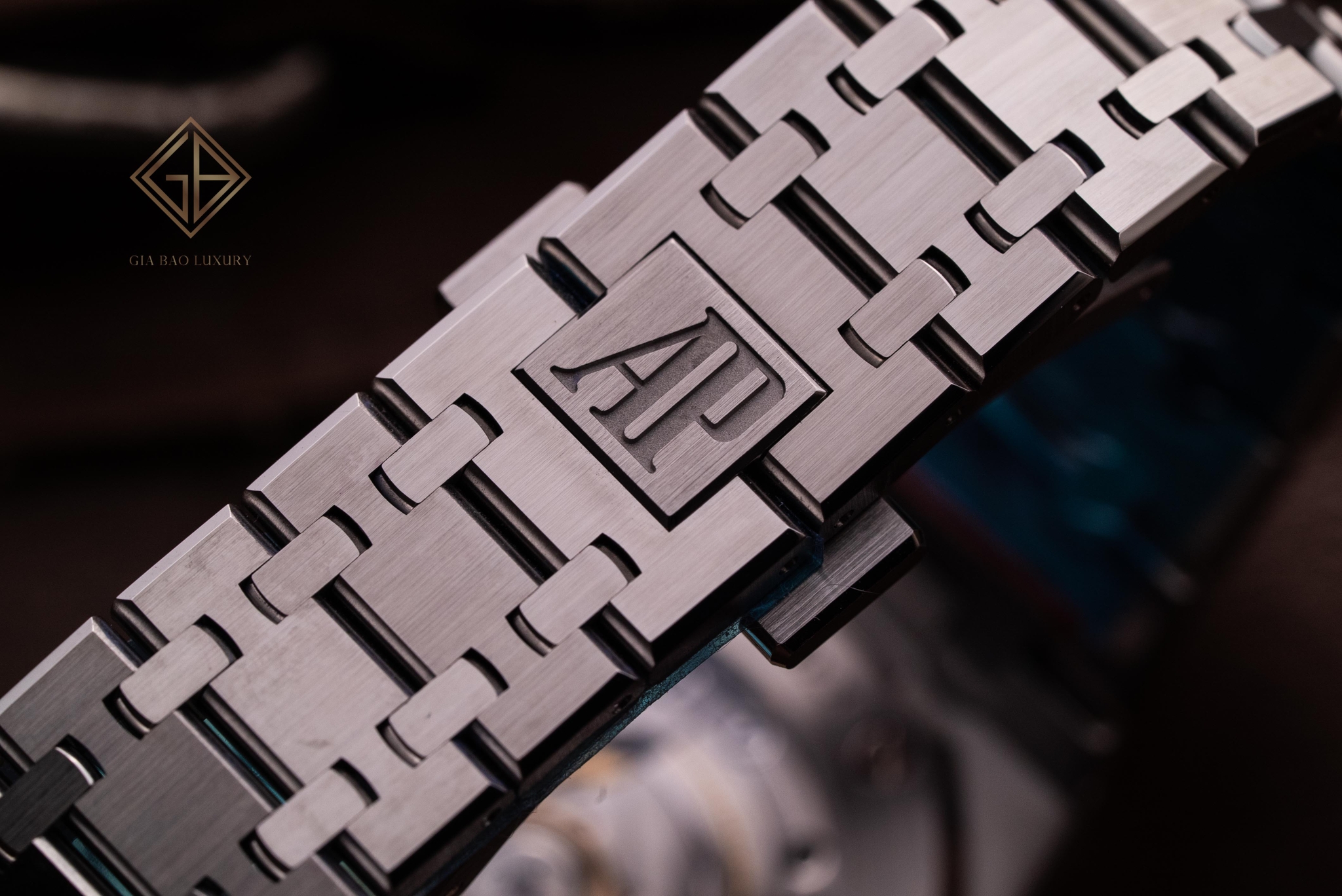 Nói đến Royal Oak, ta không thể bỏ qua bộ dây đeo, đây là một trong những chi tiết quan trọng nhất làm nên giá trị và vẻ đẹp của đồng hồ. Được chế tác từ thép không gỉ, dây đeo này mang đến sự nhẹ nhàng và ôm sát cổ tay chủ nhân một cách hoàn hảo. Không những thế, các bề mặt dây đeo được hoàn thiện chải xước tinh xảo kết hợp với đánh bóng công phu, tạo nên vẻ ngoài tổng thế tuyệt đep. Bộ dây được cố định bởi khóa gập, bên trong có khắc hai chữ AP tên viết tắt của tên thương hiệu.