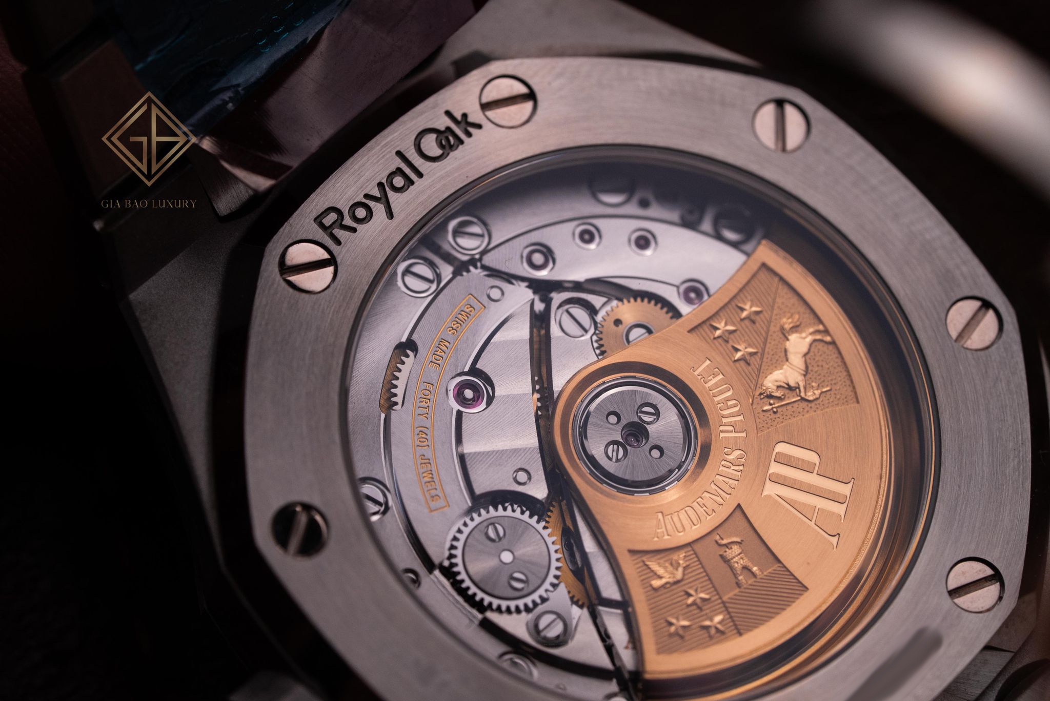 Với phương châm “Mỗi chiếc đồng hồ phải đẹp cả bên trong lẫn bên ngoài”, Audemars Piguet đã lựa chọn sử dụng cỗ máy Caliber 3120 cho phiên bản Royal Oak Selfwinding 15450ST.OO.1256ST.03. Đây là cỗ máy được sản xuất in-house bởi Audemars Piguet, cấu thành từ 280 linh kiện và 40 chân kính. Chủ nhân đồng hồ có thể chiêm ngưỡng bộ máy có vẻ đẹp hoàn mỹ này qua mặt đáy đồng hồ được làm bằng kính Sapphire. Ngoài ra, khi lên đầy cót, Caliber 3120 có thể hoạt động liên tục đến 60 giờ.