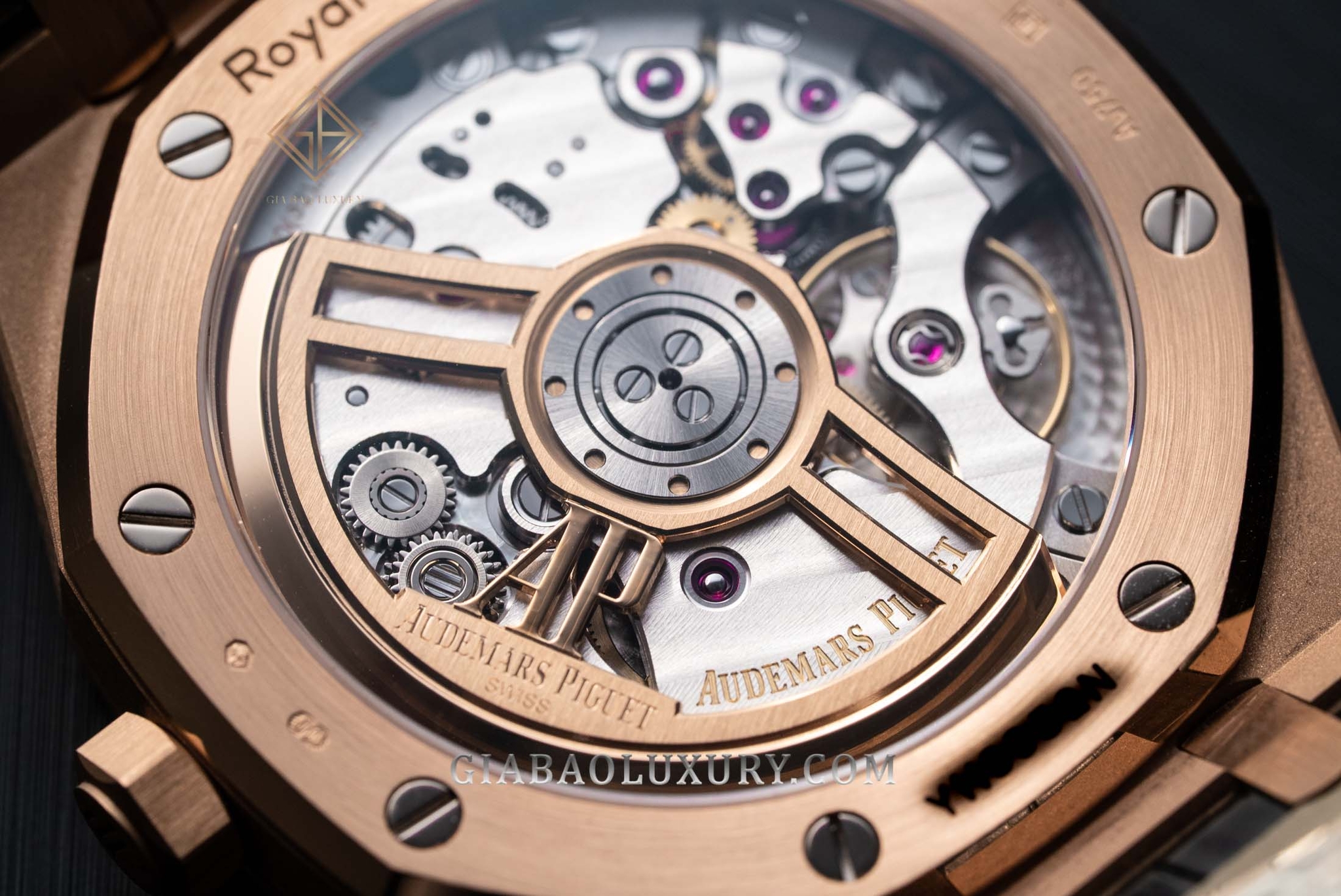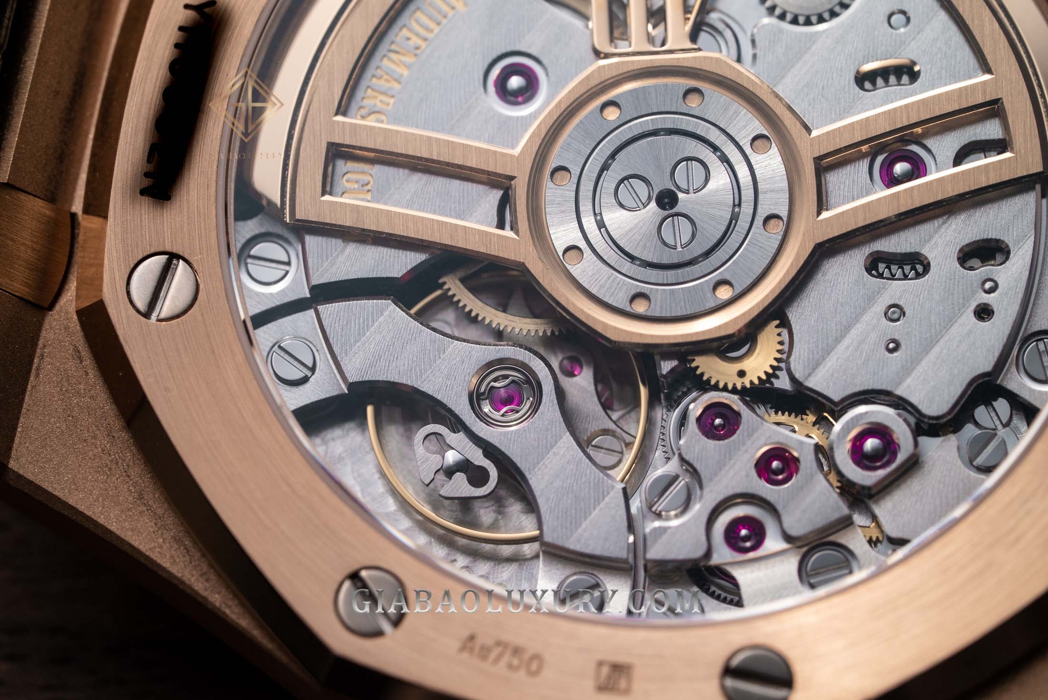 Trái tim của chiếc đồng hồ Royal Oak Selfwinding 15500OR.OO.D002CR.01 lần này là bộ máy automatic 4302 gồm 257 linh kiện với 32 chân kính có khả năng vận hành hiệu quả ở tần số 4Hz với mức dự trữ năng lượng là 70 giờ đồng hồ. Chủ nhân có thể chiêm ngưỡng vẻ đẹp hoàn mỹ của Caliber 4302 nhờ thiết kế lộ máy thông qua mặt đáy đồng hồ được làm bằng kính sapphire chống lóa, chống xước.