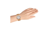 Mặt số đồng hồ màu trắng bạc nổi bật với họa tiết Grande Tapisserie lộng lẫy. Không tuân theo thiết kế cọc số truyền thống của thương hiệu, phiên bản đồng hồ nữ này được trang bị các cọc số hình lá nhỏ nhắn bằng vàng nữ tính, mang đậm vẻ đẹp của mùa thu. Cùng với bộ kim trung tâm bằng vàng chải mờ và ô cửa báo ngày viền vàng khiêm tốn ở vị trí 3 giờ, dưới mặt kính sapphire, mặt số nổi bật một sắc vàng thu yêu kiều, không quá phô trương nhưng lại tinh tế và sang trọng.