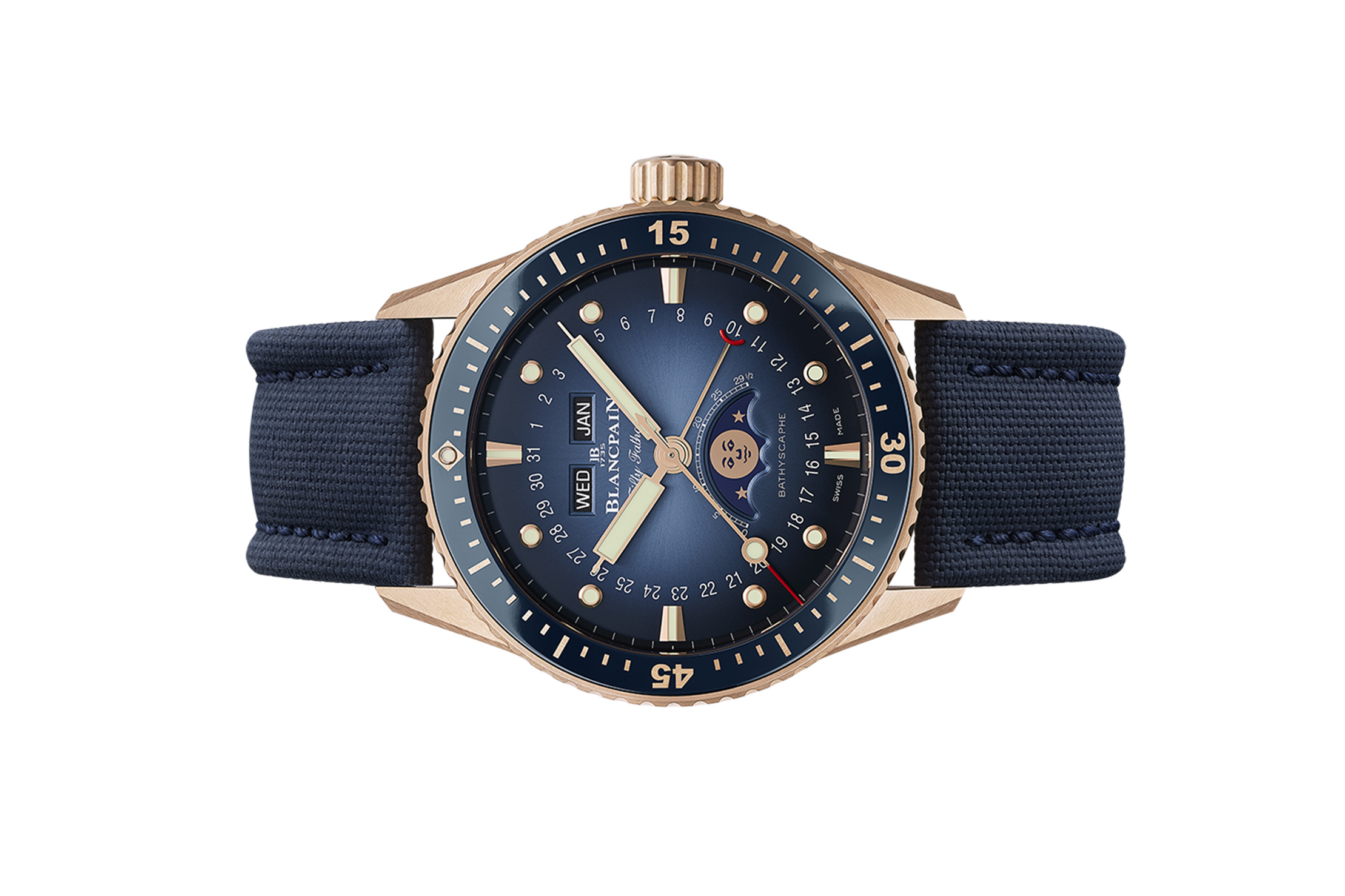 Giới thiệu đồng hồ Blancpain Fifty Fathoms Bathyscaphe Quantième Complet Phases de Lune 5054-3640-O52B