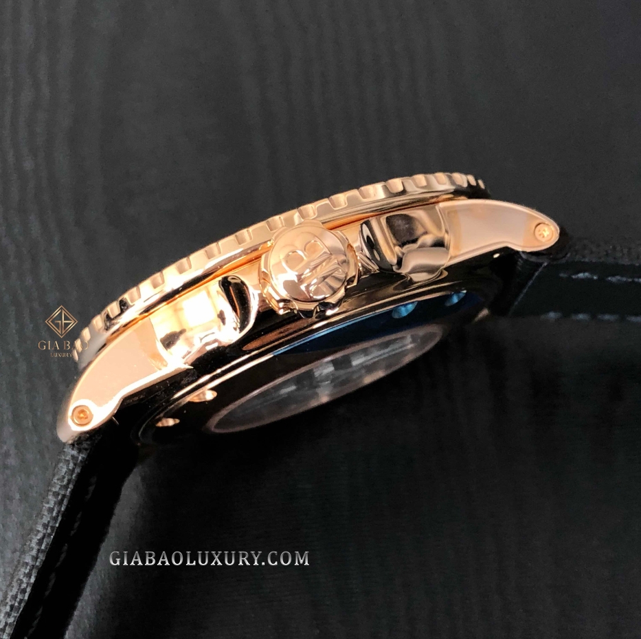 Tái hiện những giá trị thương hiệu đã mất vào thập niên trước, phiên bản Blancpain Fifty Fathoms Tourbillon 5025-9530-52A đang được nhắc tới đã khiến công chúng mở rộng tầm mắt với thiết kế độc đáo và khả năng xử lý chất liệu tuyệt vời. Kiêu hãnh trong bộ vỏ khung làm từ vàng hồng cao cấp được điểm tô bằng sự hoàn mỹ của những viên kim cương lấp lánh và tinh khiết men theo vành bezel, đặc biệt ở chỗ bốn góc đồng hồ thay vì sử dụng kim cương tròn, nhà sản xuất đã đính những viên kim cương hình tam giác, chạm trổ vào viền vỏ tạo hiệu ứng thị giác kỳ ảo. Cùng kiểu dáng với đường viền của vành bezel, thiết kế núm điều chỉnh khía rãnh đã khóa chặt vỏ đồng hồ giúp tạo tác có thể chống thấm nước hiệu quả ở độ sâu 300m.