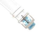 Đi kèm với mẫu đồng hồ này, nhà Blancpain đã lựa chọn phiên bản dây đeo màu trắng bằng da cá sấu. Đây có thể nói là một sự lựa chọn vô cùng khôn ngoan đến từ Blancpain khi màu trắng của dây tỏ ra cực kỳ nhẹ nhàng, trang nhã khi đi cùng bộ vỏ. Mặt khác, chất liệu da cá sấu cũng được xem là chất liệu phù hợp với đôi tay phái yếu khi mẫu dây này mang lại cho người đeo cảm giác cực kỳ thoải mái, mềm mại khi đeo.