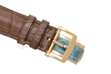 Xuất hiện trong bộ vro khung làm từ vàng hồng 18k, với kích thước 40mm x 11,75mm không hề kén chọn cổ tay người đeo, tạo tác chứa đựng phong cách cổ điển, lịch lãm và đầy nam tính. Nối liền bộ vỏ khung qua bốn càng nối dây bóng bẩy là dây đeo đồng hồ làm từ chất liệu da cá sấu màu nâu trầm là tông màu thân thuộc, dễ phối hợp với nhiều kiểu trang phục đồng thời tôn lên vẻ đẳng cấp, sang trọng của quý ông. Với trang bị dây đeo da là chất liệu mềm mại, khi lên tay chiếc đồng hồ đem lại cảm giác thoải mái, vừa vặn cho người đeo đồng thời giảm áp lực lên cổ tay do chất liệu có trọng lượng nhẹ hơn so với các loại dây đeo kim loại khác.