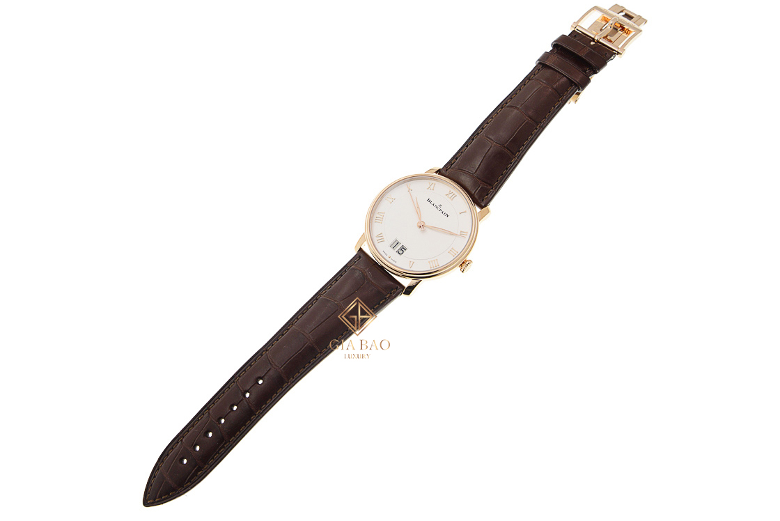 Nổi bật với tông màu trầm, nhẹ nhàng, dịu mắt chiếc đồng hồ Blancpain Villeret Grand Date 40mm 6669-3642-55B mà hôm nay Gia Bảo xin giới thiệu đến quý độc giả khoác lên mình bộ vỏ bằng vàng hồng 18k với đường kính 40mm thanh thoát đế từ nhà sản xuất đồng hồ trứ danh, tập hợp những người thợ lành nghề nhất, điều đó đã giúp cho Blancpain là cái tên luôn được nhắc tới trong giới đồng hồ xa xỉ.