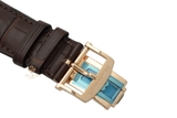 Phiên bản dây đeo đồng hồ màu nâu làm từ da cá sấu là mẫu dây đeo được lựa chọn để đi cùng với mẫu đồng hồ này. Sắc màu của dây là yếu tố hoàn hảo, giúp vẻ ngoài của chiếc đồng hồ hoàn toàn được phủ một gam màu ấm khá cổ điển và tao nhã. Bên cạnh đó, chất liệu da cá sấu cũng mang đến cho đôi tay người đeo một cảm giác đặc biệt mềm mại, vừa vặn và thoải mái trong những hoạt động thường ngày.