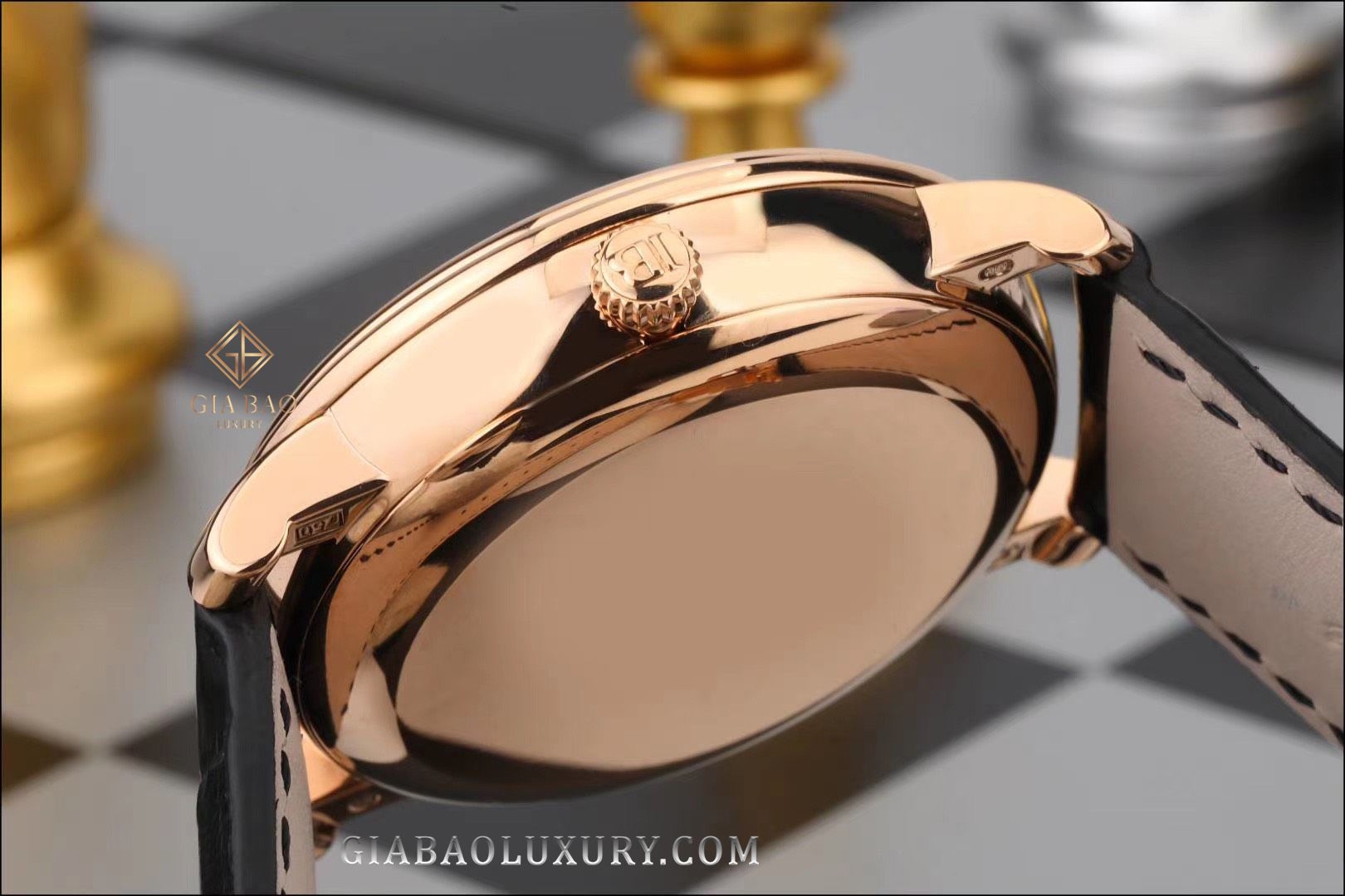 Và tất nhiên, không thể bỏ lỡ hai ô cửa sổ báo thứ và tháng dưới góc 12 giờ cùng tính năng lịch moonphase được biểu diễn sinh động góc 6 giờ họa hình mặt trăng vàng cùng các vì sao nổi bật trong đêm tối như thổi hồn vào cỗ máy thời gian khiến các chuyển động trên mặt số bỗng trở nên hấp dẫn, quyến rũ lạ thường.
