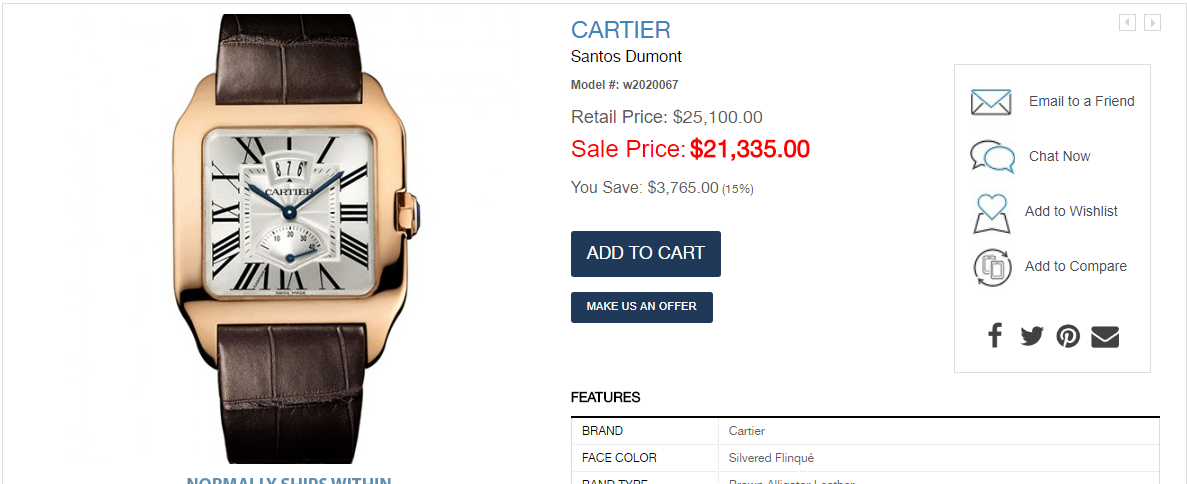Thông số kỹ thuật Đồng hồ Cartier Santos Dumont CRW2020067